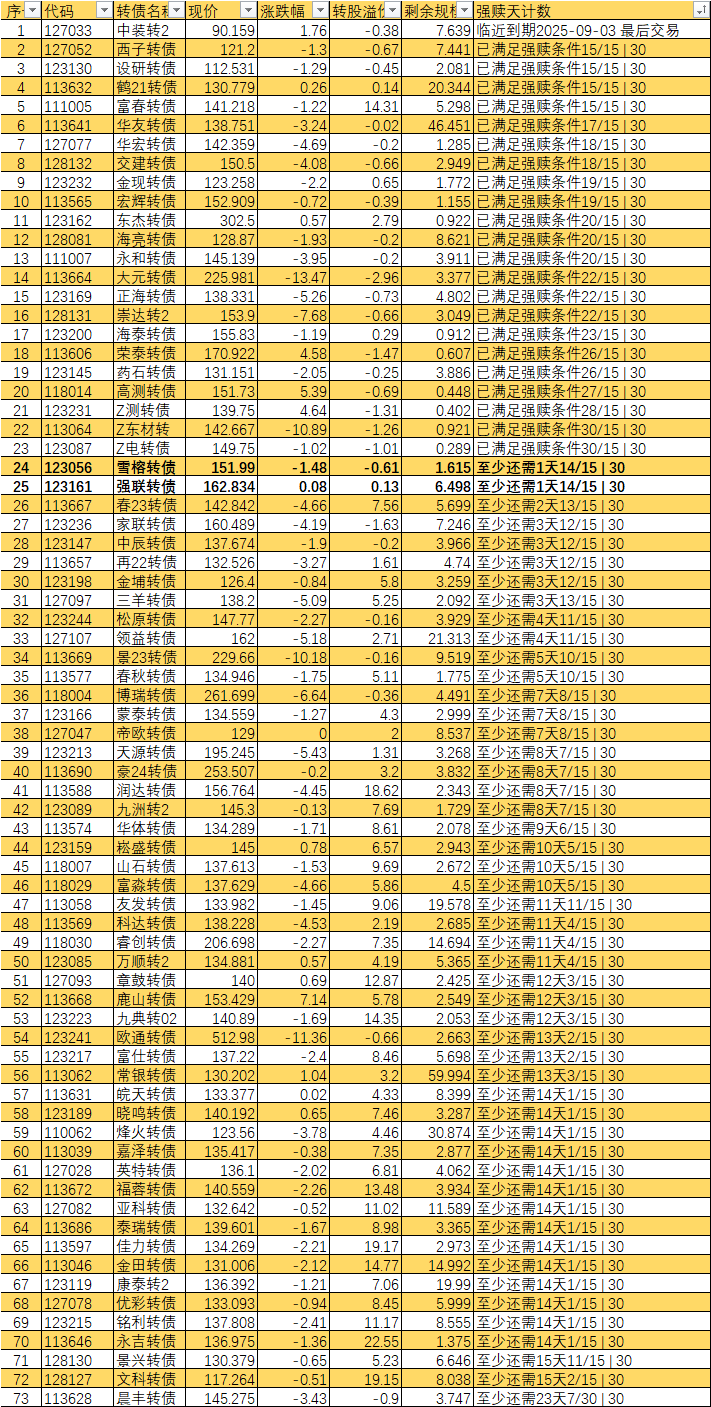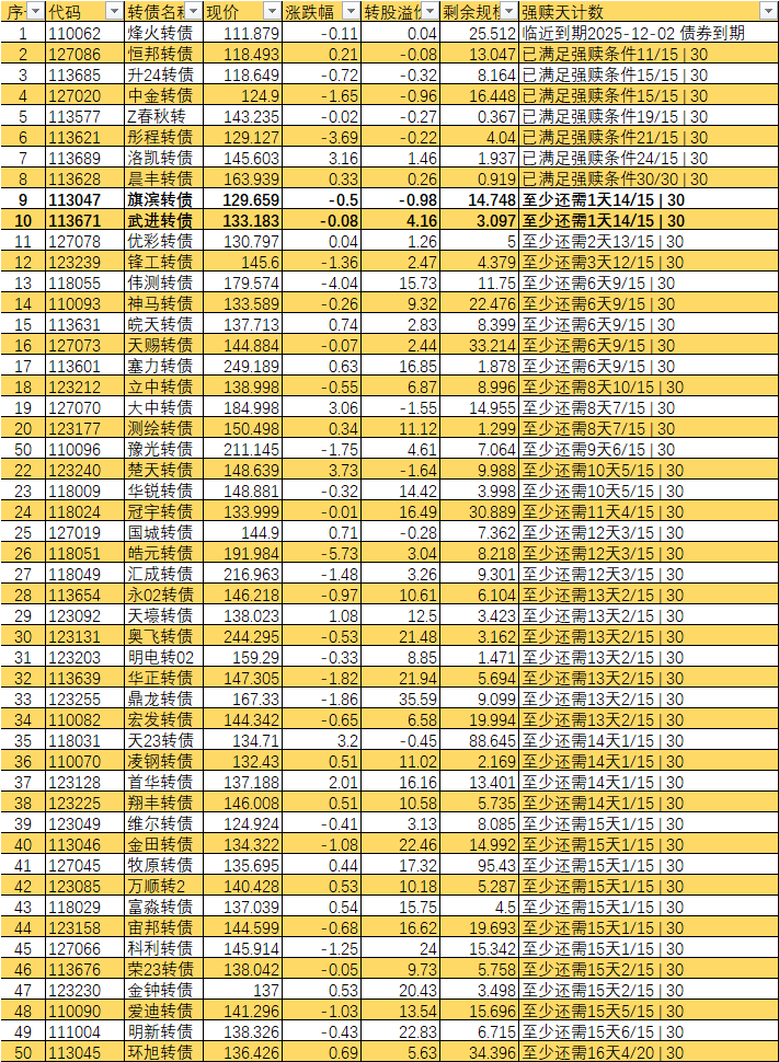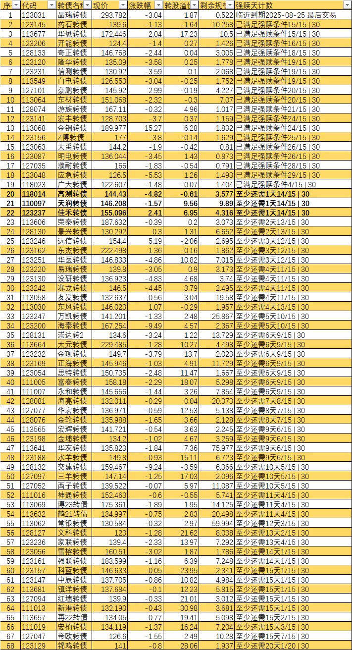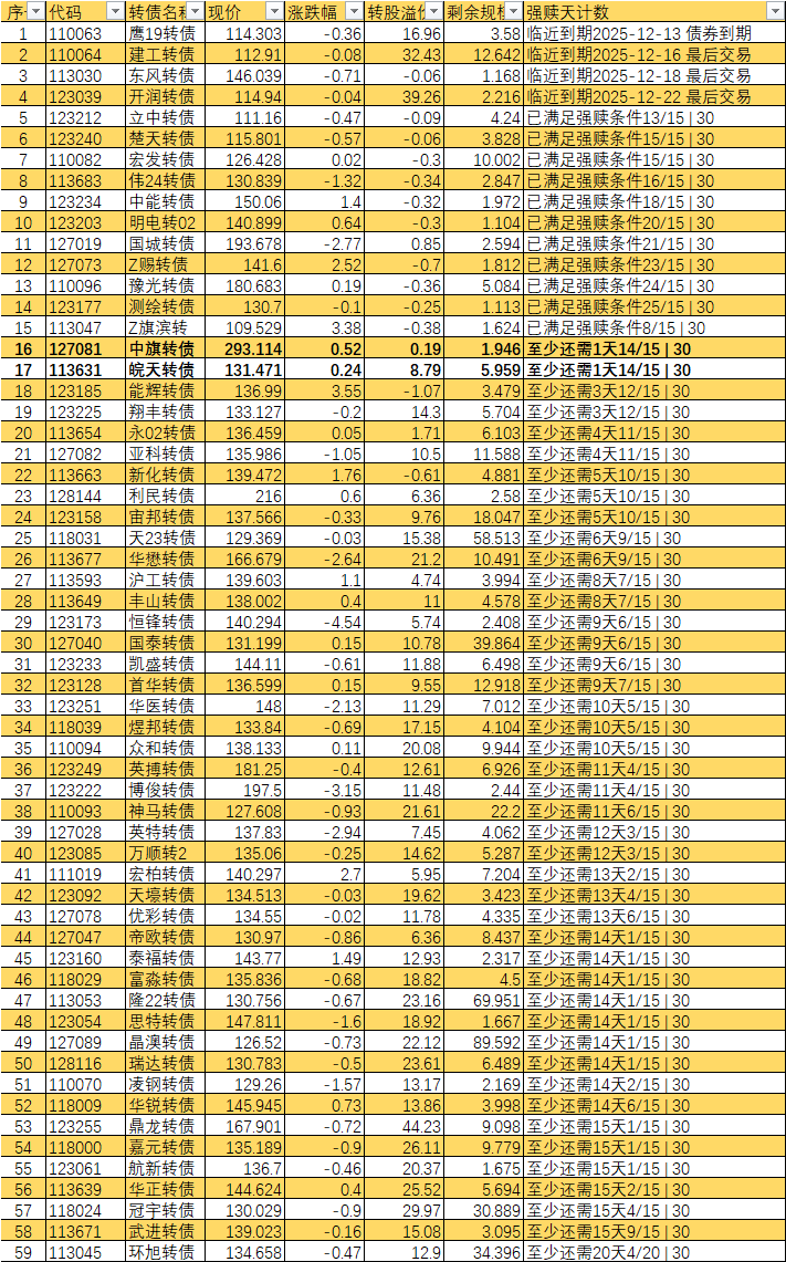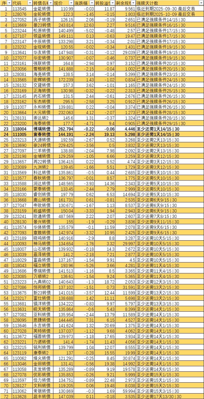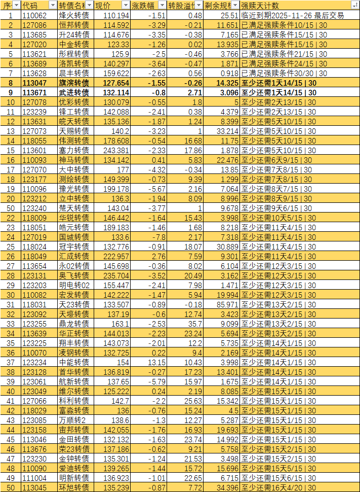 已经宣布强赎的不从表里划掉吗 比如旗滨