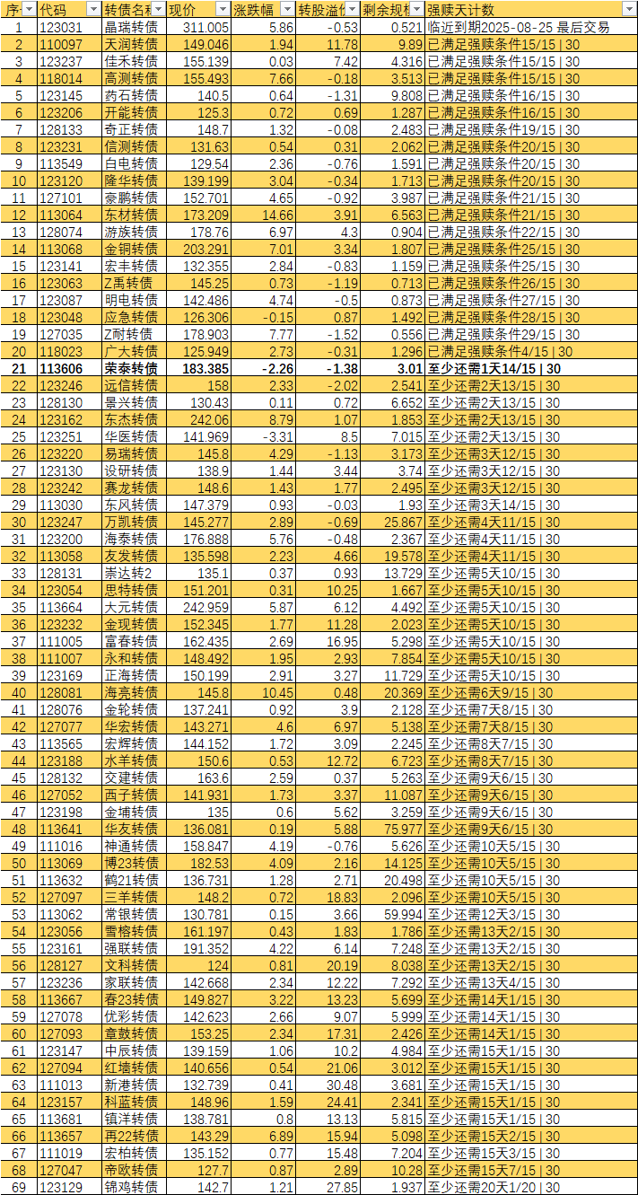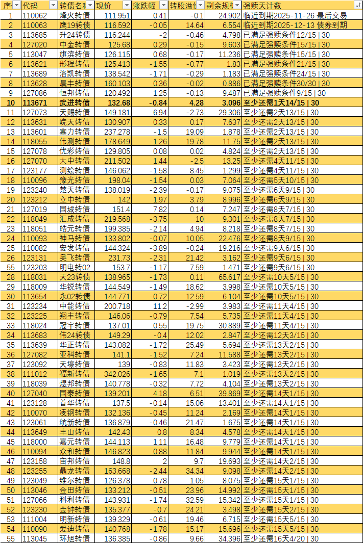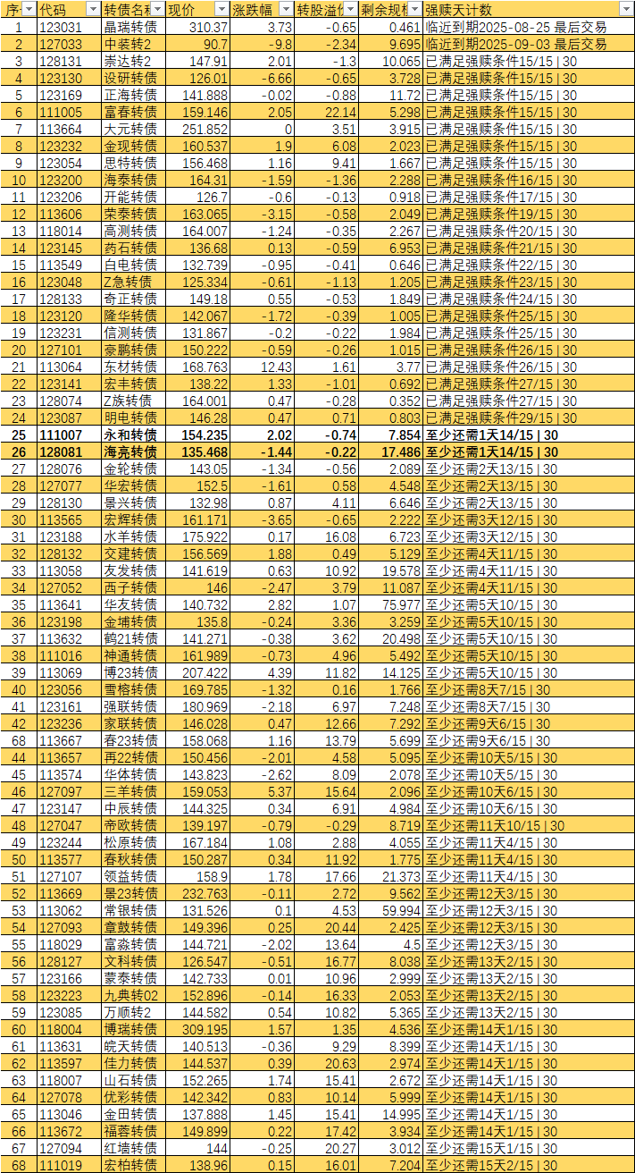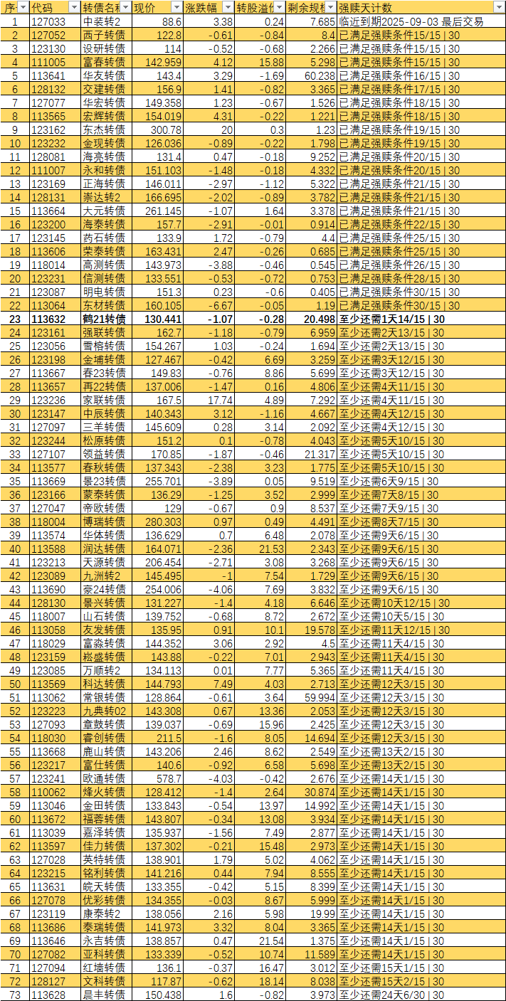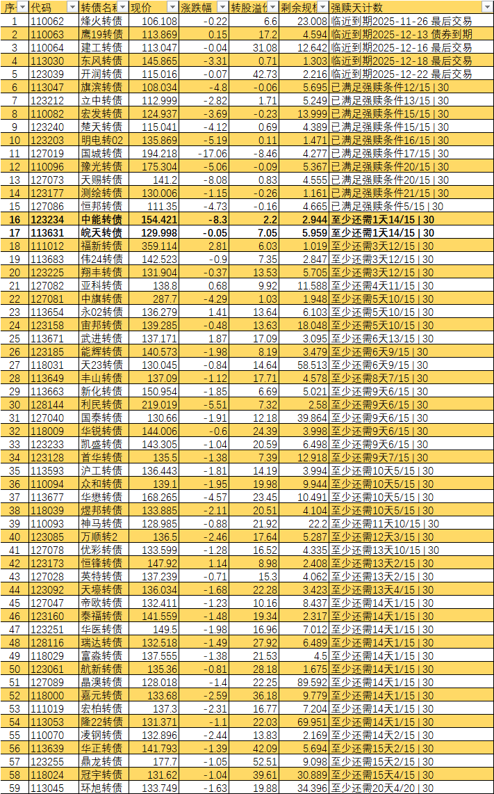 已经宣布强赎的不从表里划掉吗 比如旗滨