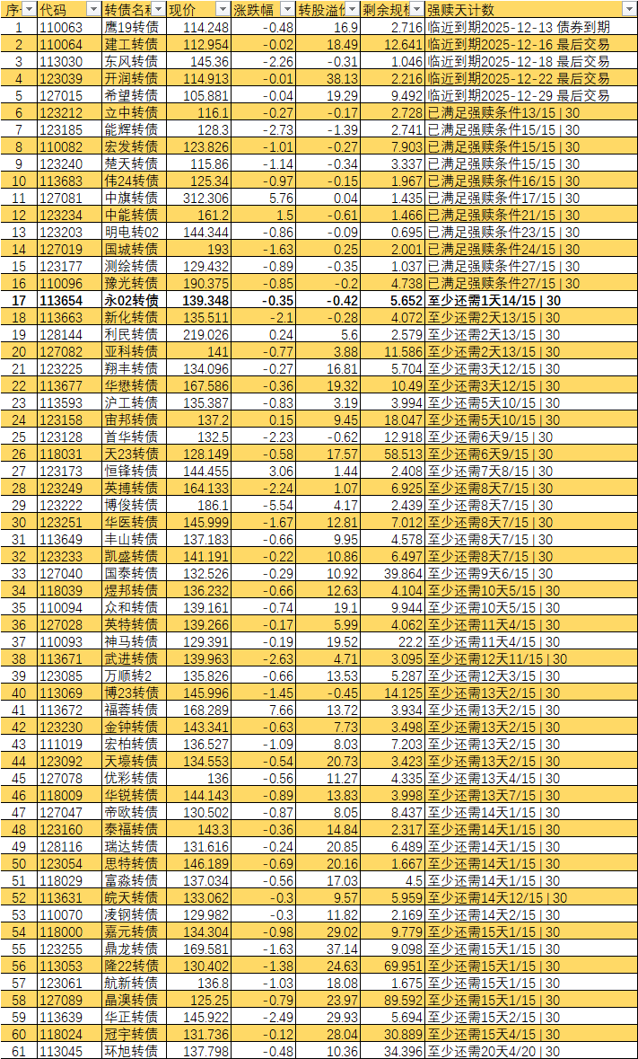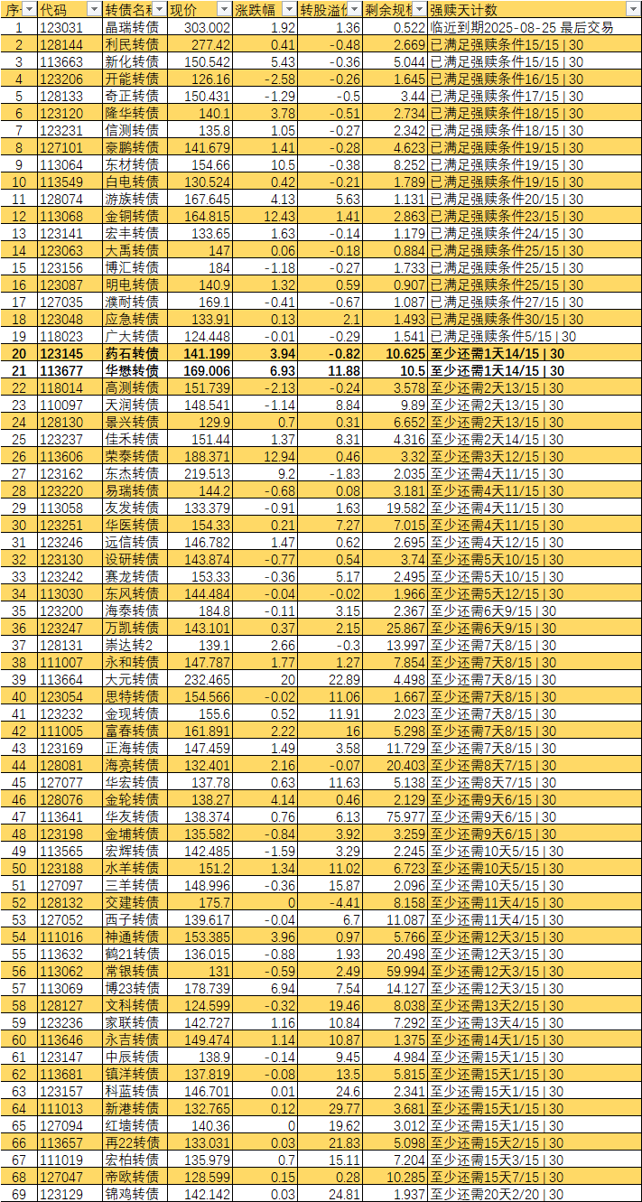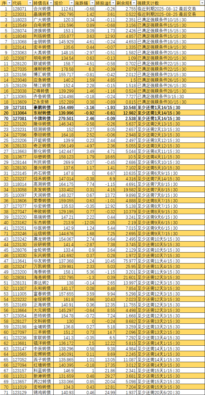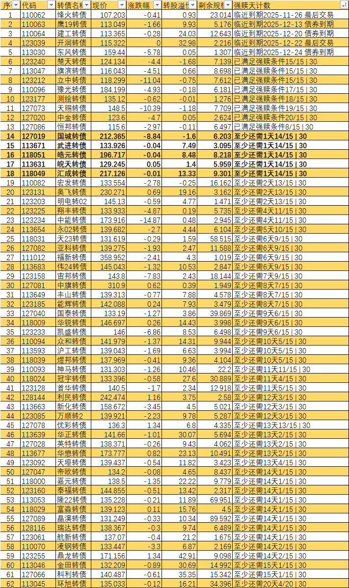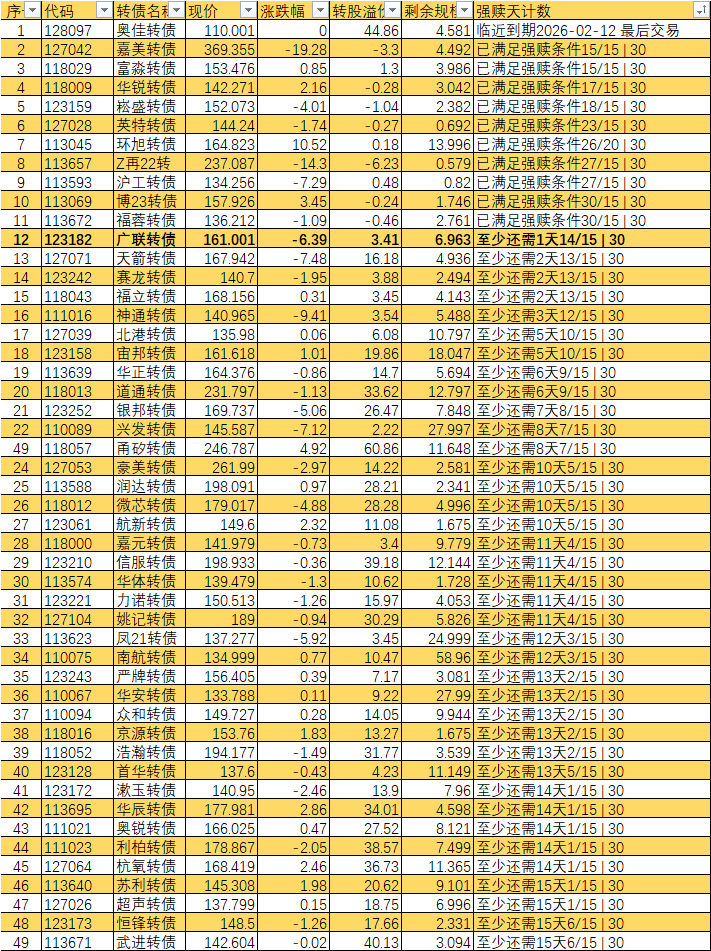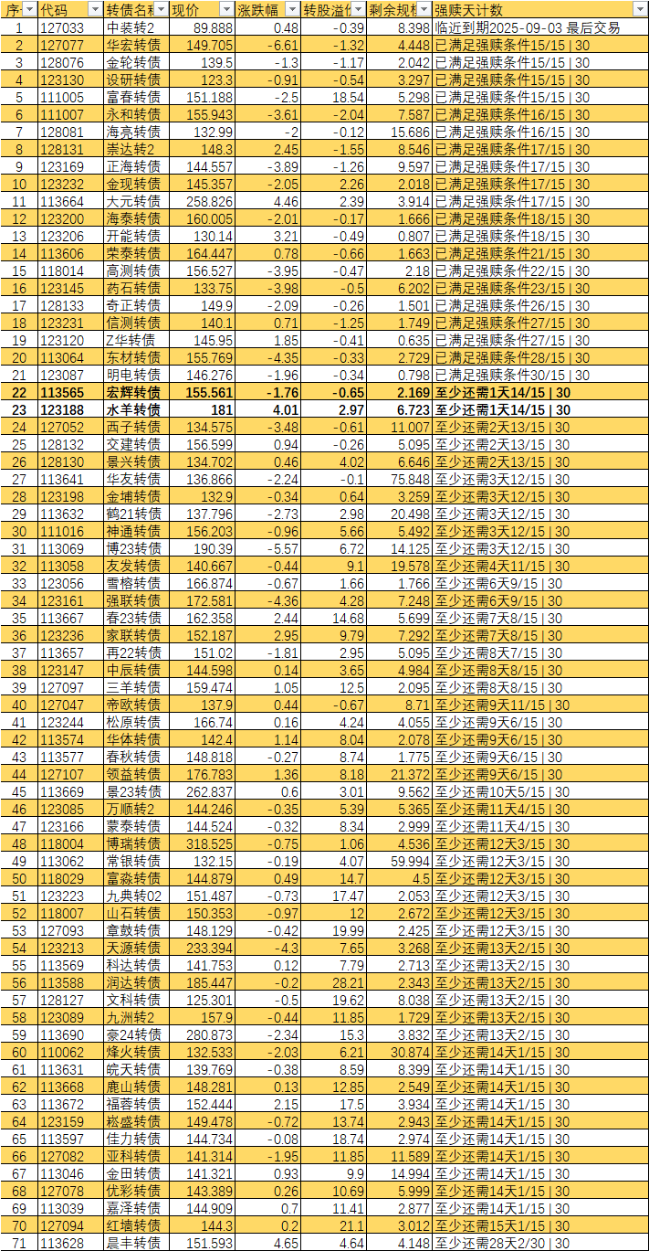 已经宣布强赎的不从表里划掉吗 比如旗滨