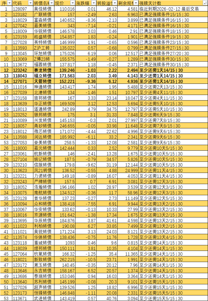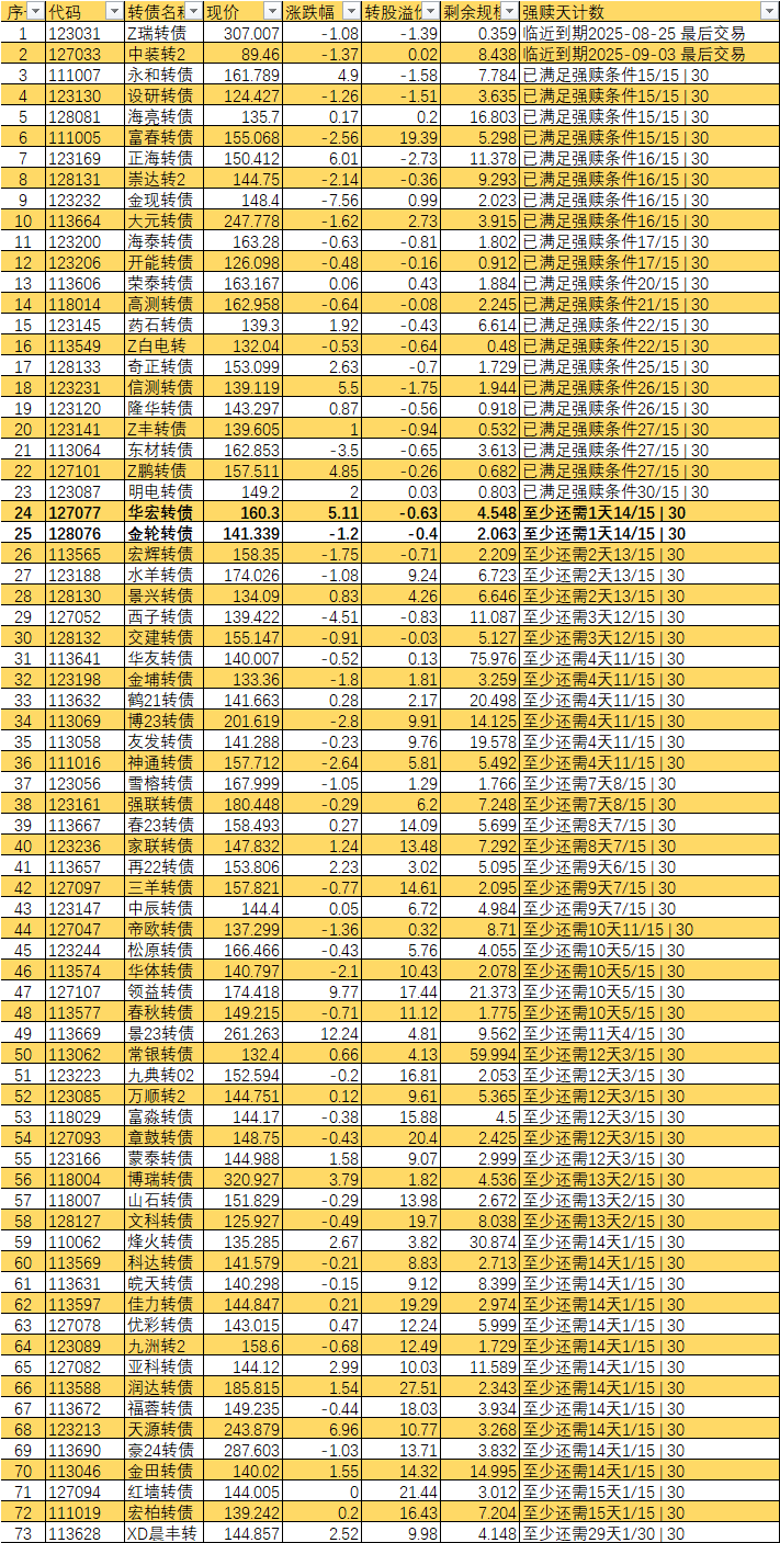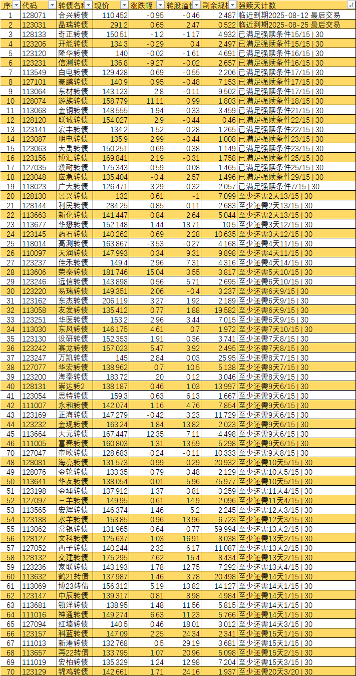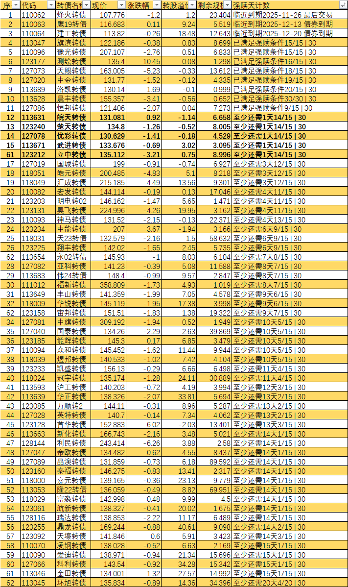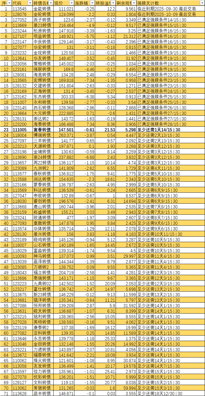 已经宣布强赎的不从表里划掉吗 比如旗滨