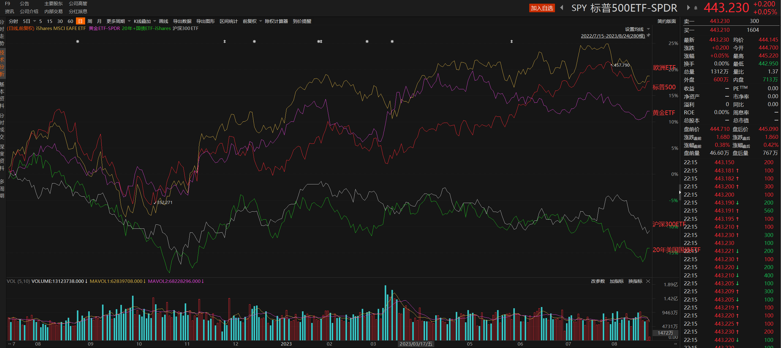而且发现欧洲股指也没跌,黄金也基本没跌