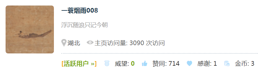 给管理员解释一下,这个头像截自南宋马远的画作,签名是一句歌词,应该都没有什么问题。