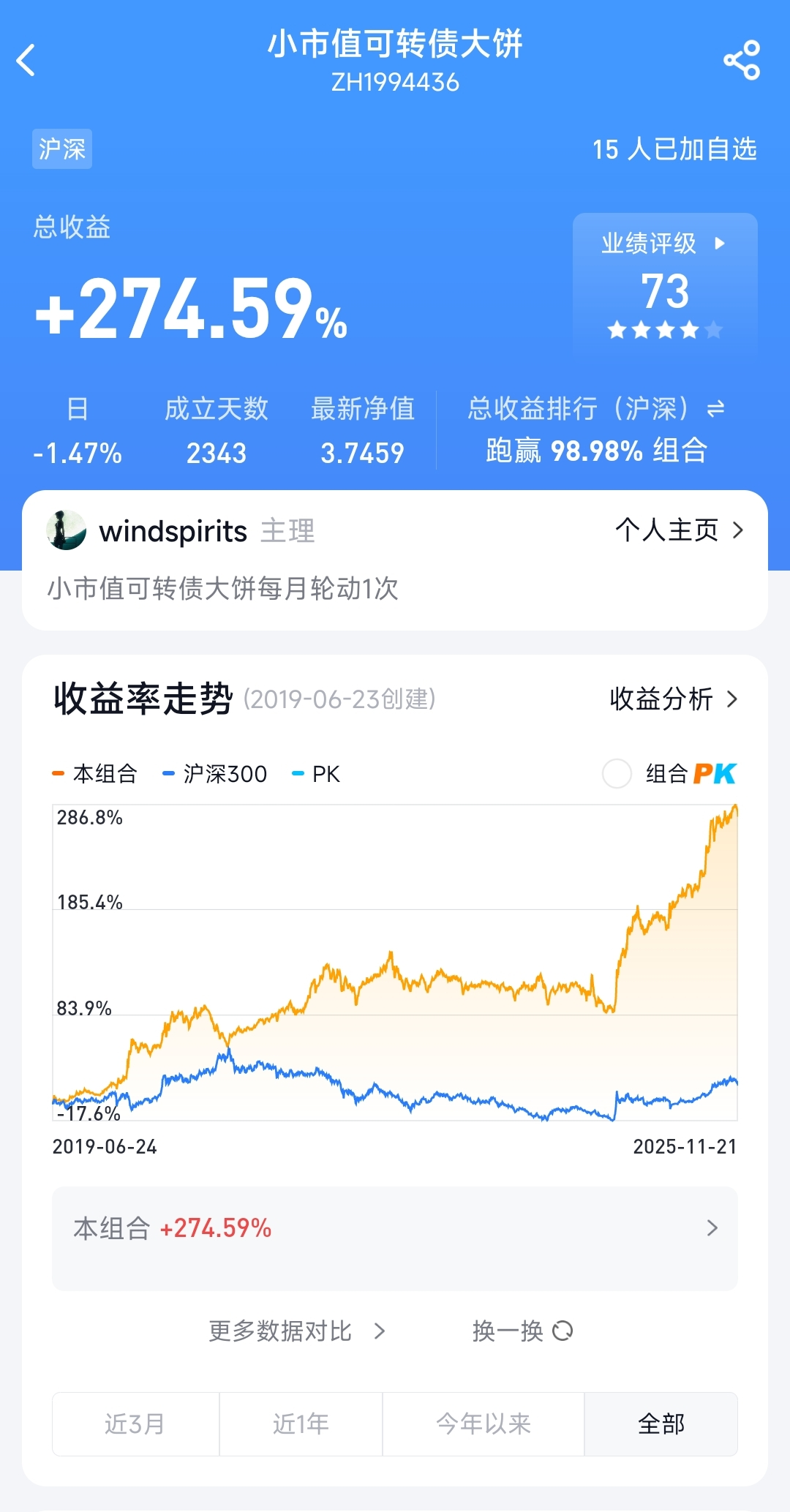 启动资金: 200000.0 转债资金: 370025.53 净值: 1.8501 涨幅: 0.45%