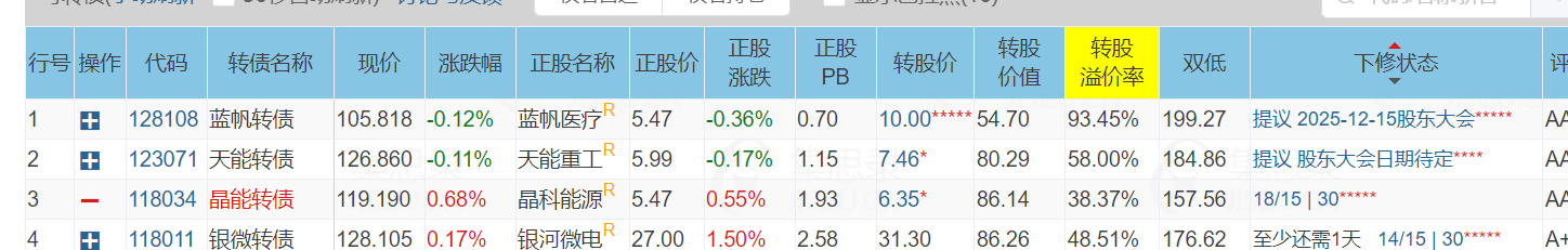 很多债无法破净下修, 希望抓紧 加个 每股净资产 每次查每股净资产 很麻烦!!!!!!!!!