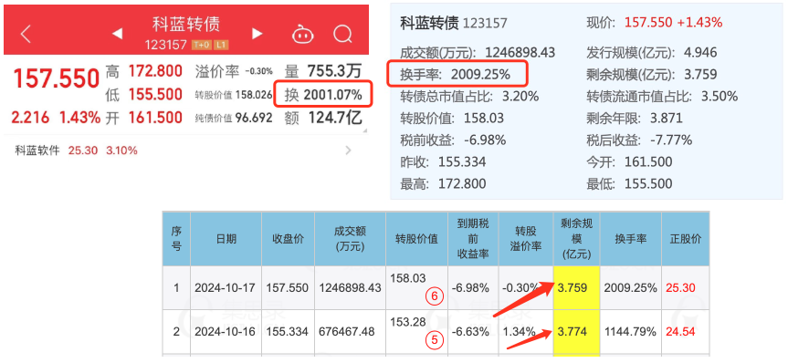 选了几只看是一样的呢。目前是用当前存量数据计算的换手率(用成交量和剩余张数),如果某些券商用发行量计算,或用的当前存量数据不同(更新不及时),或用成交额做计算都会导致换手率不同。是和同花顺看是不同的,比如说科蓝转债。