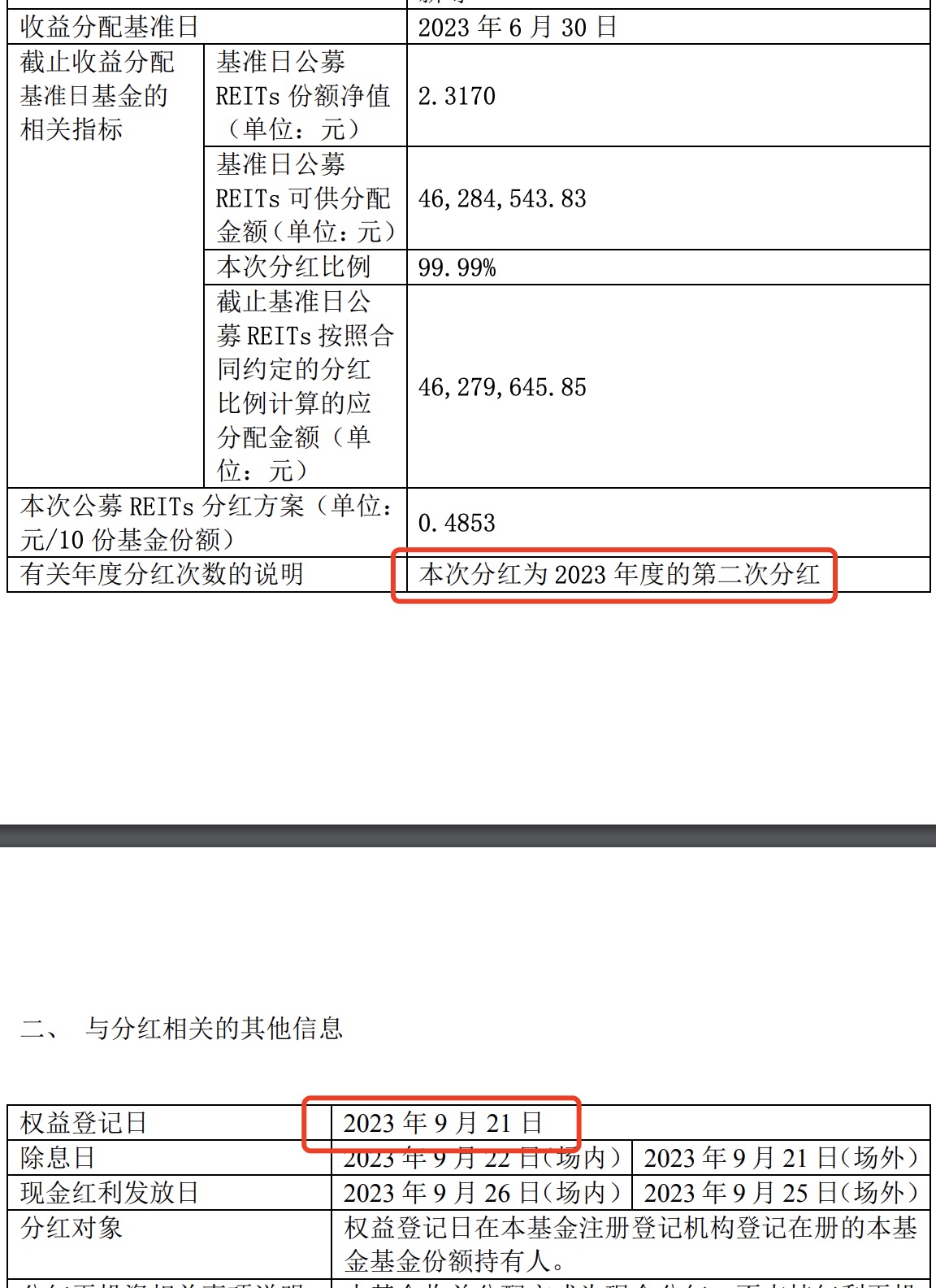 第二张是第二次分红,也没有说明是针对4月到9月的分红额度。