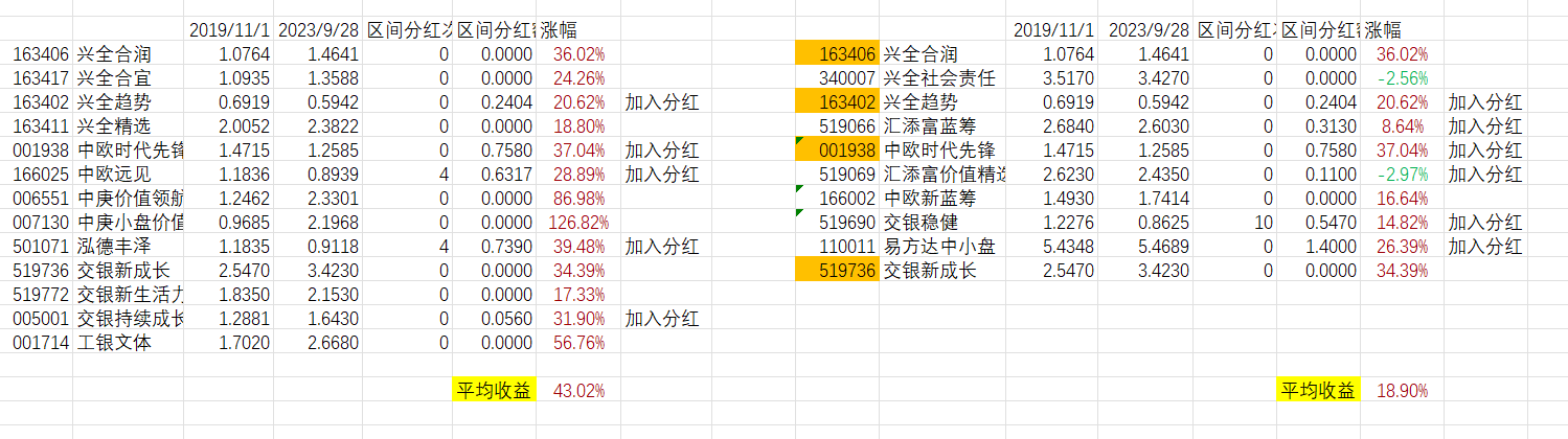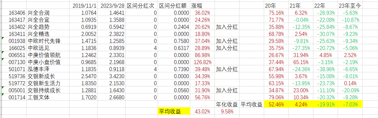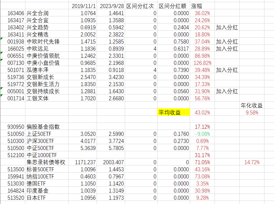 假设你平均持有每一只基金,平均下来4年收益43.02%,年化9.58%