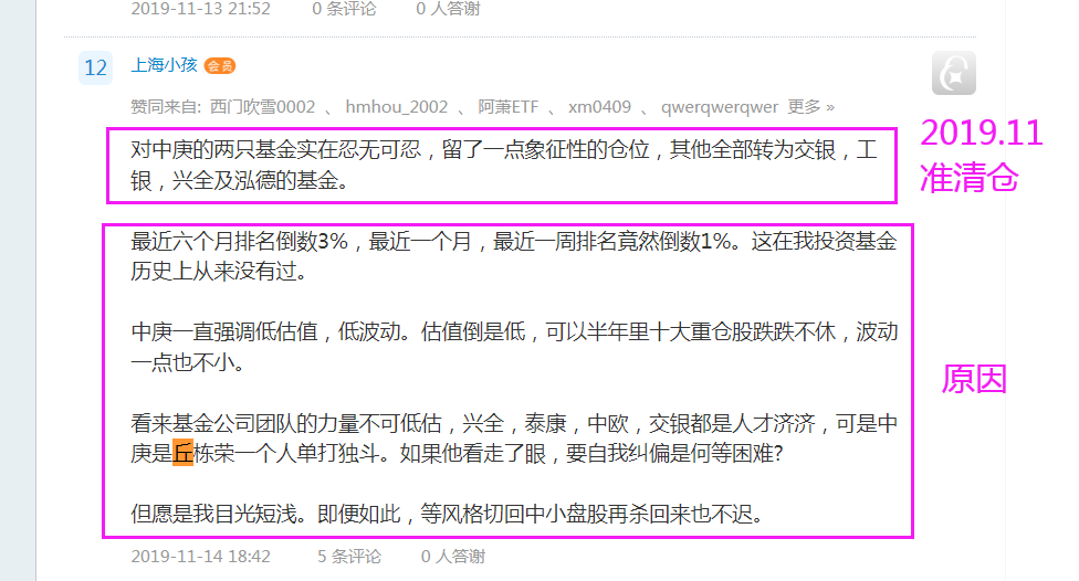 先说结论,小鬼在2019年11月底12月初忍无可忍基本清仓中庚,而中庚直到2021年5月后才跑盈沪深300开始主升。丘管理的中庚如何逆天成功的是另外一个课题。