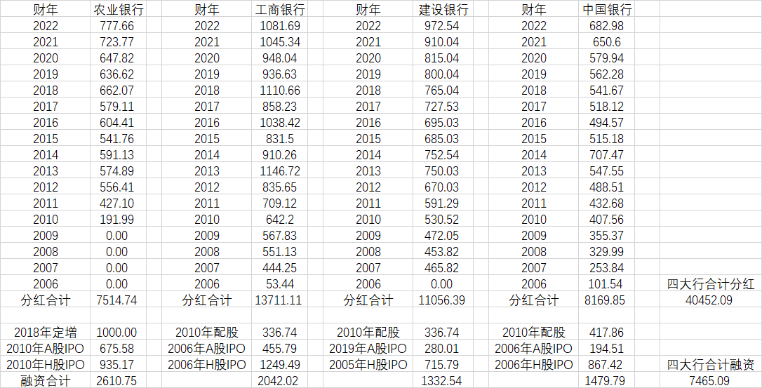 我估计肯定有喷子要问我,为啥不把永续债和优先股算上?那你咋不把银行存款也算上呢?永续债和优先股跟二级市场普通股股东有啥关系? 4万亿分红了还堵不上这些黑粉的嘴,银行分的是假钱,只不过我每年拿到手的假钱可以花。哈哈哈哈。