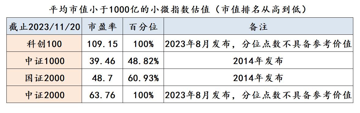 1)真正意义上的微小盘股大概有4个,科创100>中证1000>国证2000>中证2000;