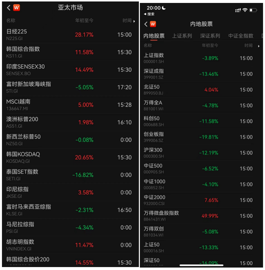 闲着没事又去翻了下今年各大指数的涨幅: