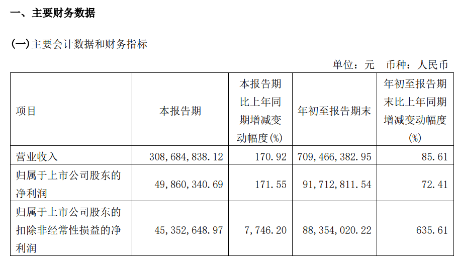 2023年第三季度营业收入同比增长85.61%,归属上市公司股东的净利润同比增长72.41%。