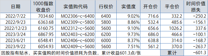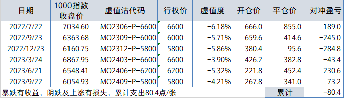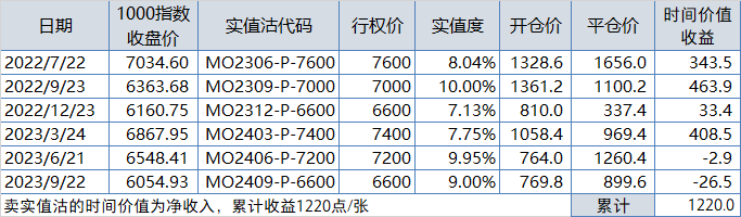5、卖实值沽合约选择及调仓日如下