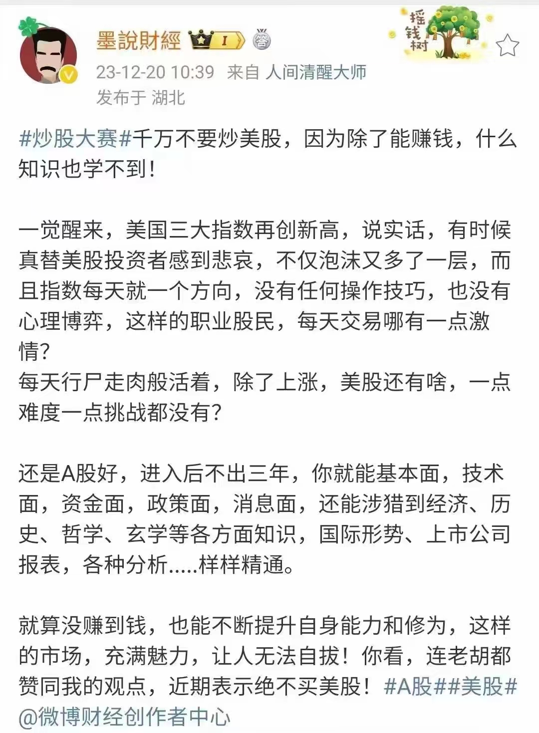 但是我也有另外一个问题,就是同样的我,同样的知识,按照我的理解甚至瞎买的美股,为什么都是盈利的?