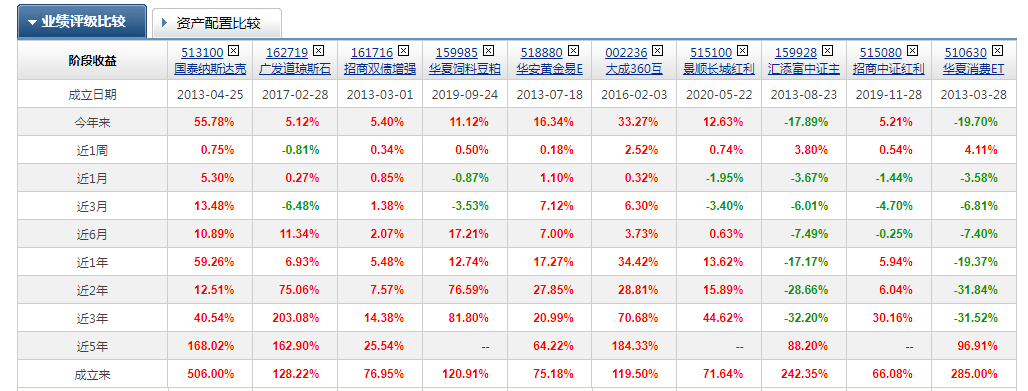 美股纳斯达克科技513100+中国消费510630+低波红利515100+360互联网002236(场外)