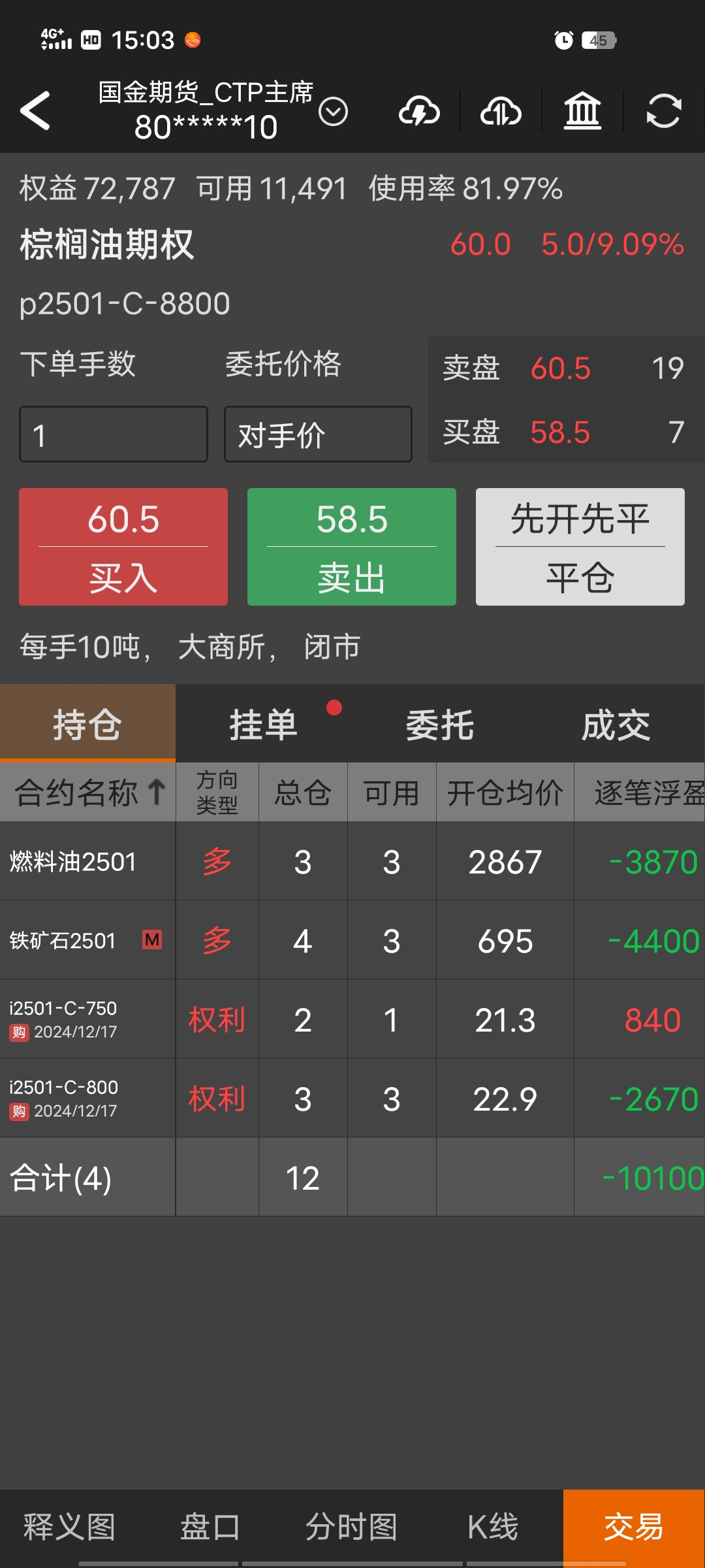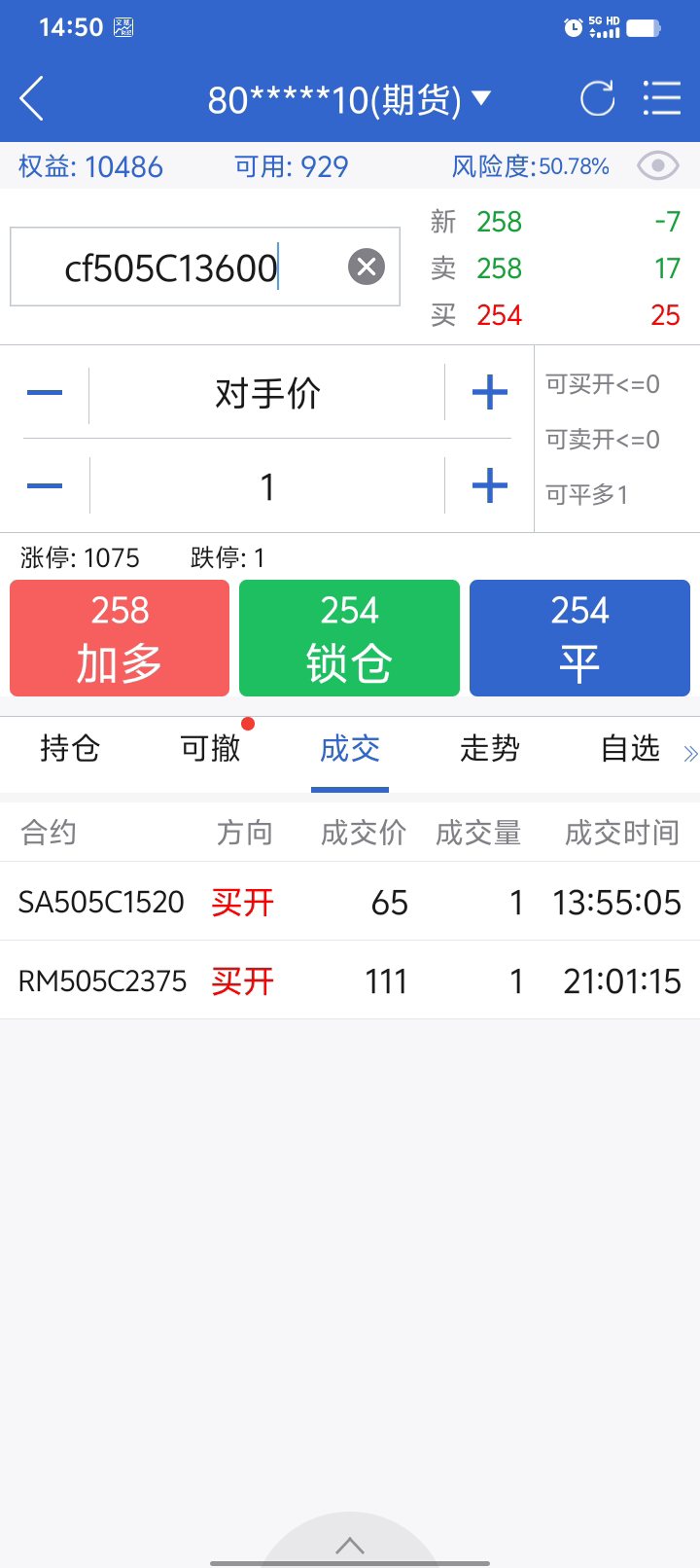 条件单50.5成交mac2500,剩下的都是手动交易,捂脸,清了pta,05,5016出,正330块,清剩下的三手期权,合计亏450块。67.5/63.5/59.5加三手,有点小疯。