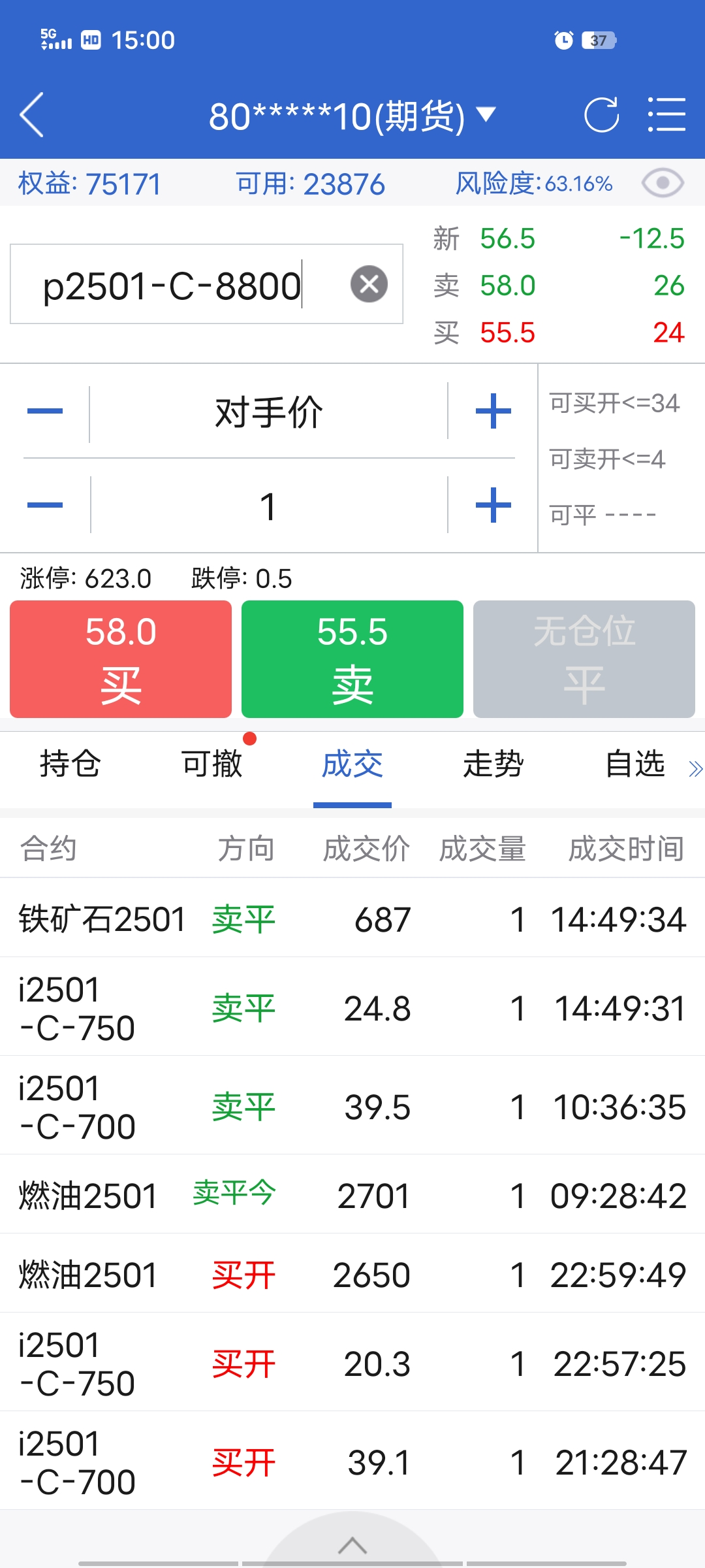 挂单28.8出ic750,正280块,i05手动750.5出,正1580。铁就是永远的神。800的波动好小,收12。后续除铁和油外,其他期权品种亏损尽量不加仓,相当于做趋势,要不亏完或者止损。配合网格或者独立操作。