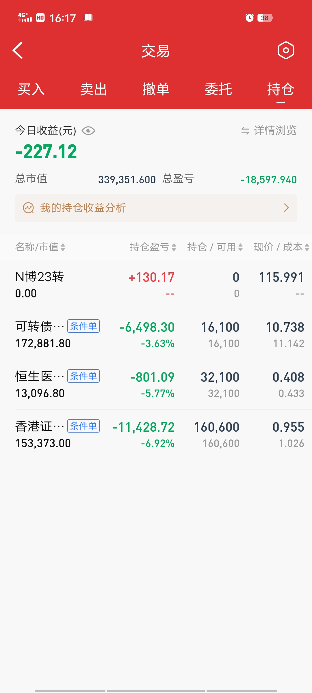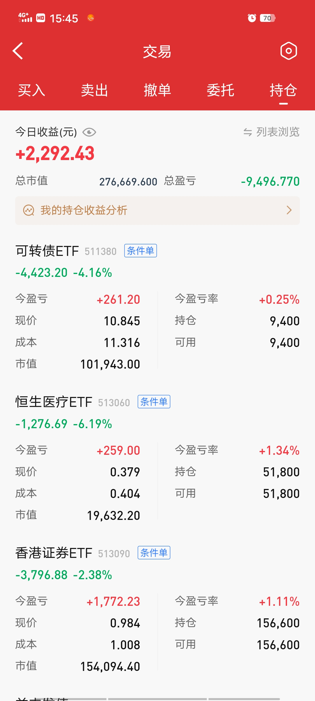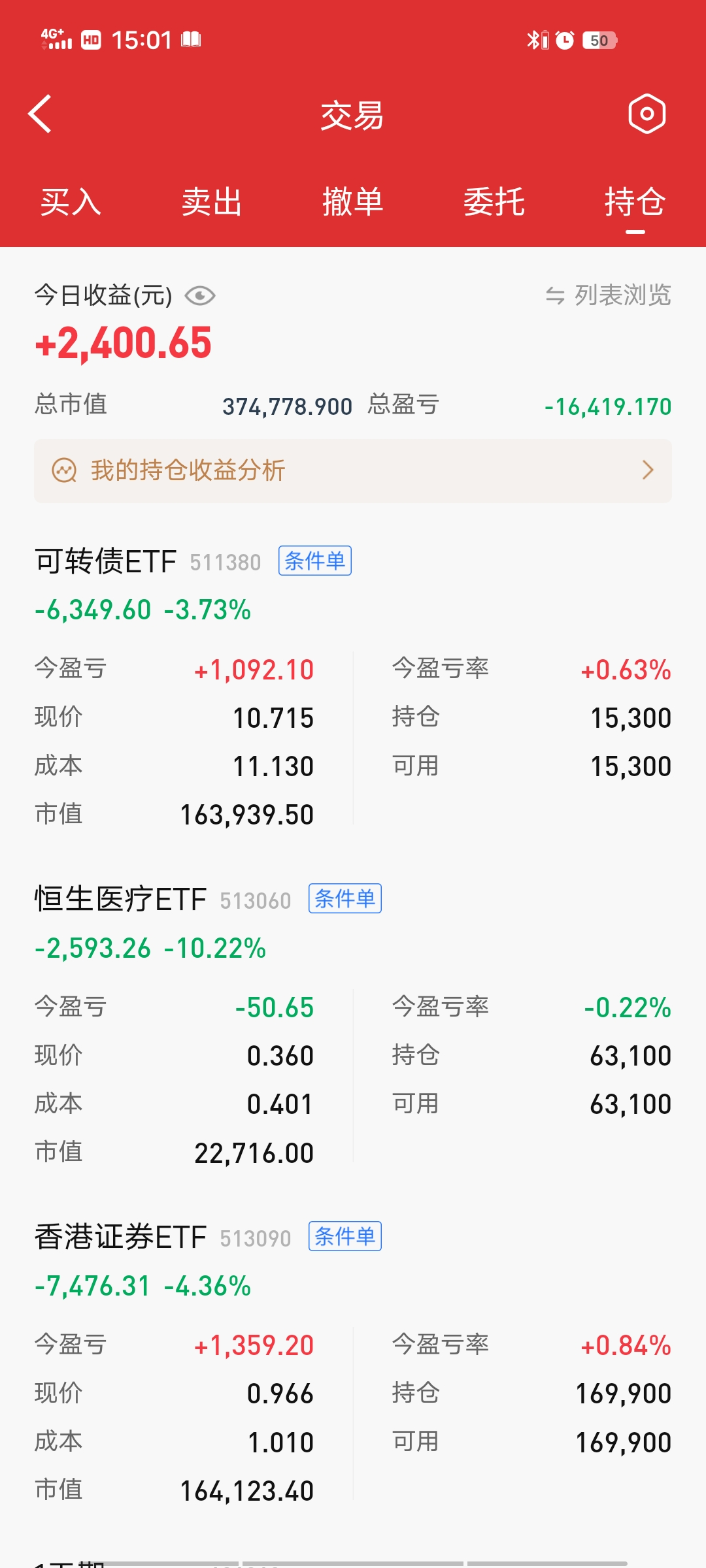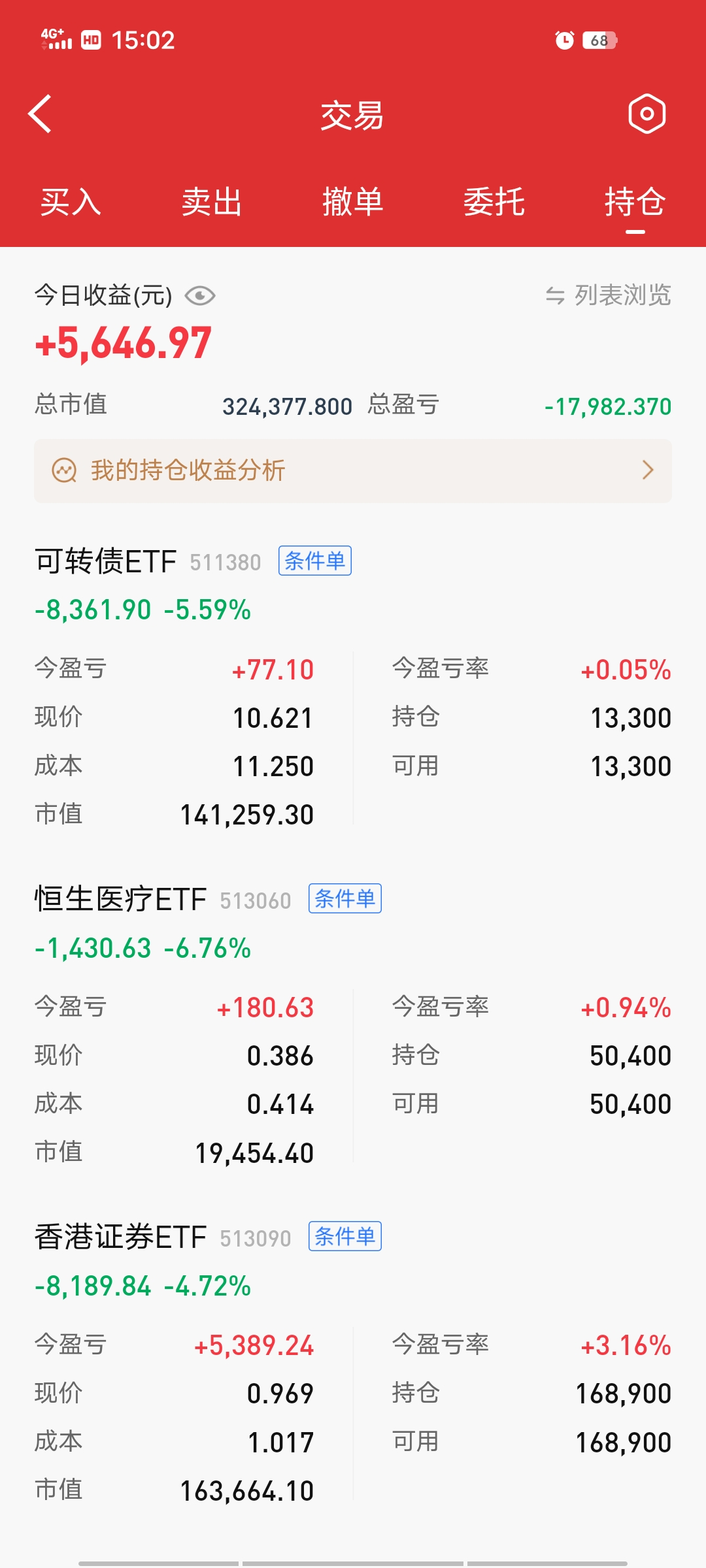 基金继续网格,另090午盘0.933加挂出4000份。今天减了16000份左右,380也出了不少。差一点收复失地,偷笑。