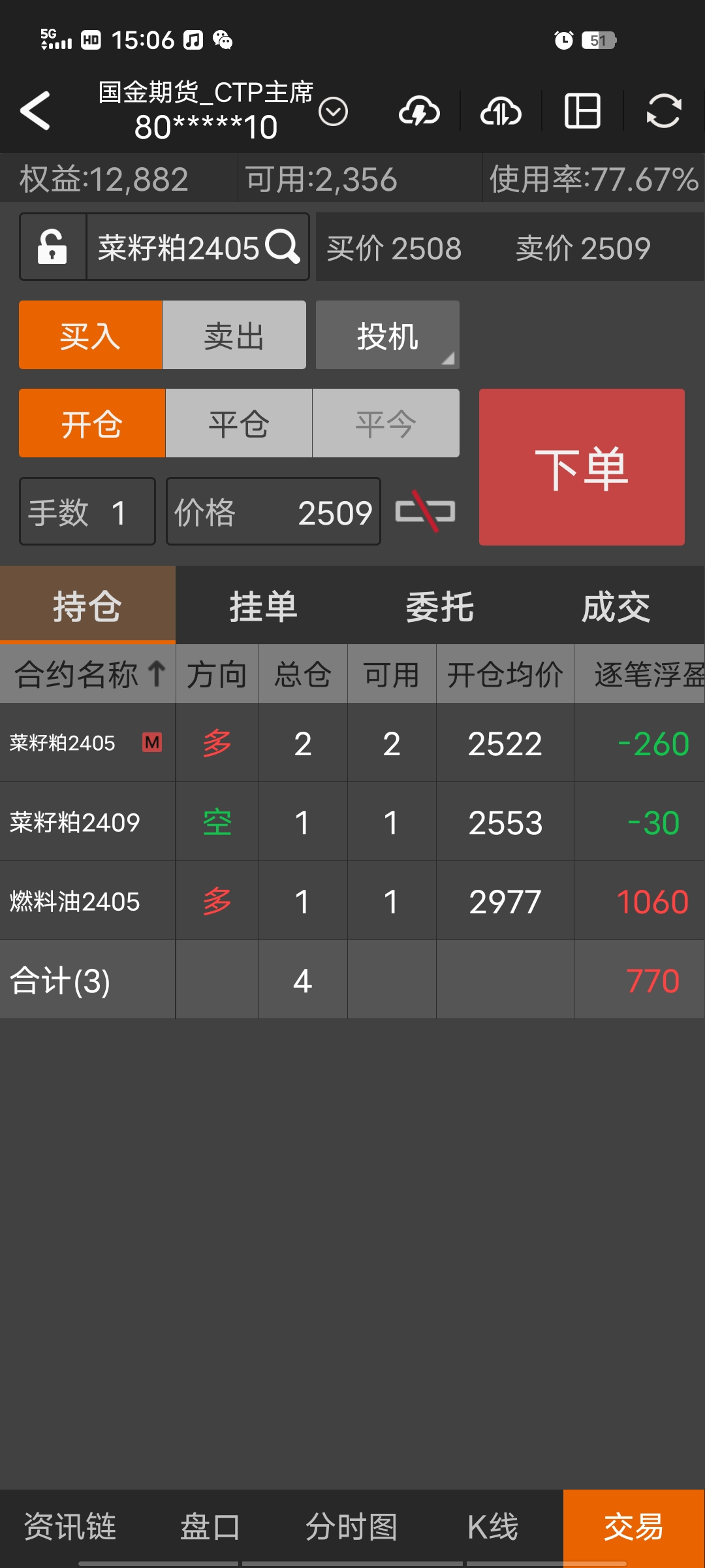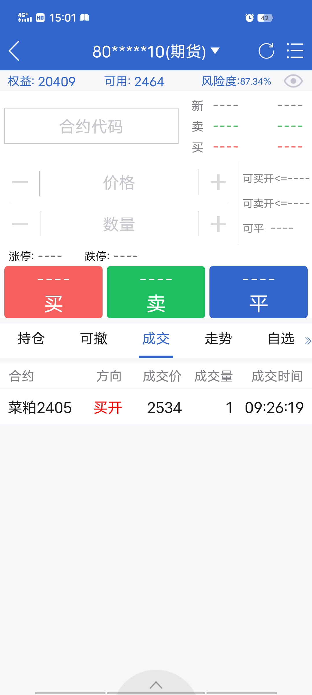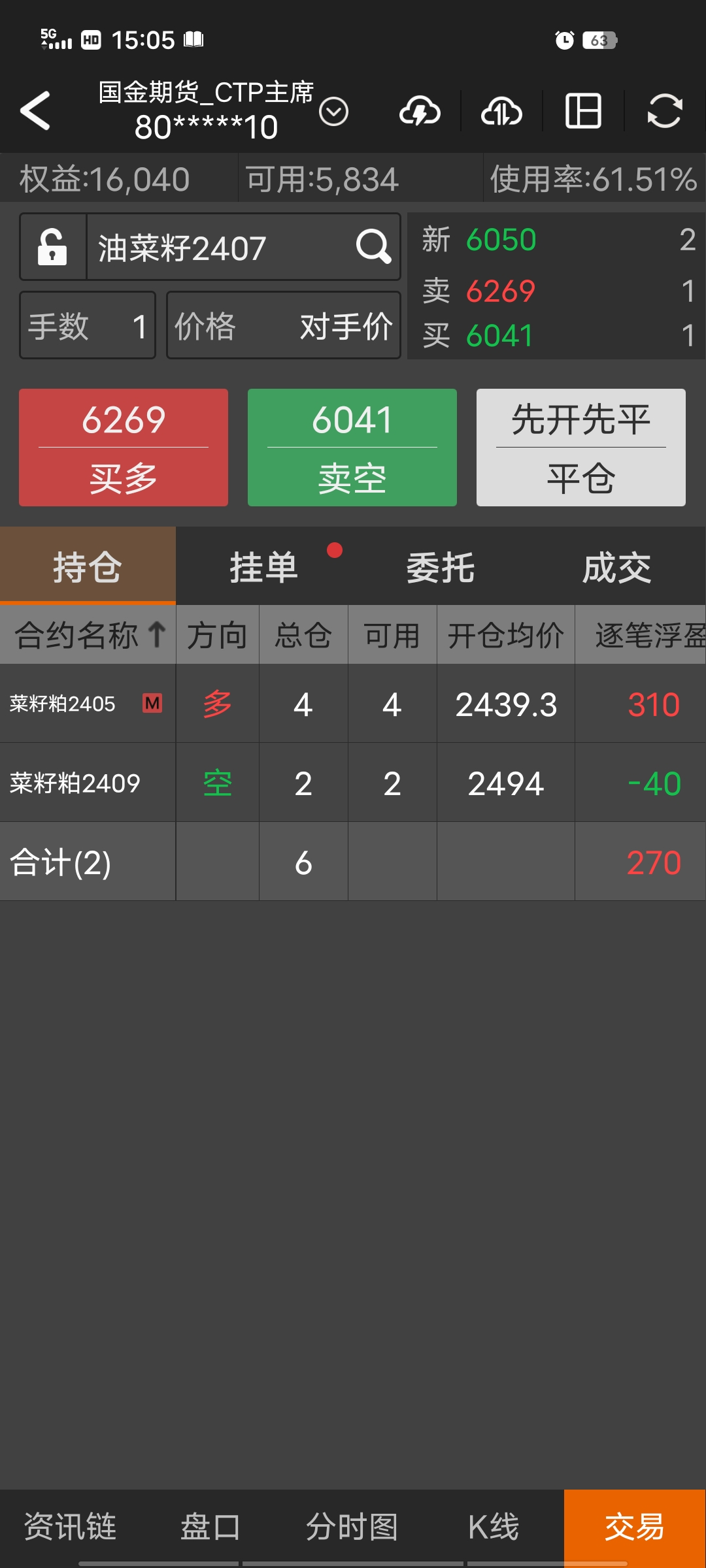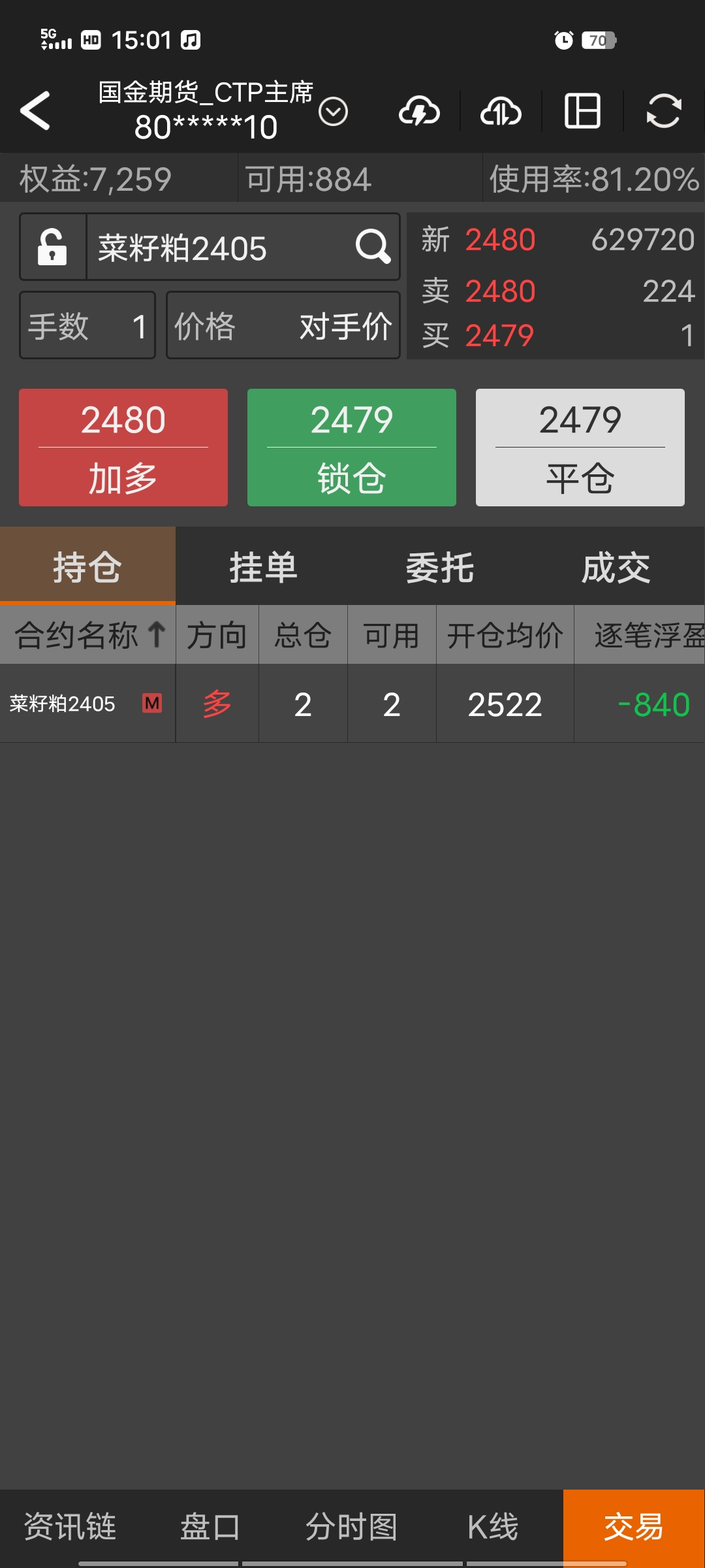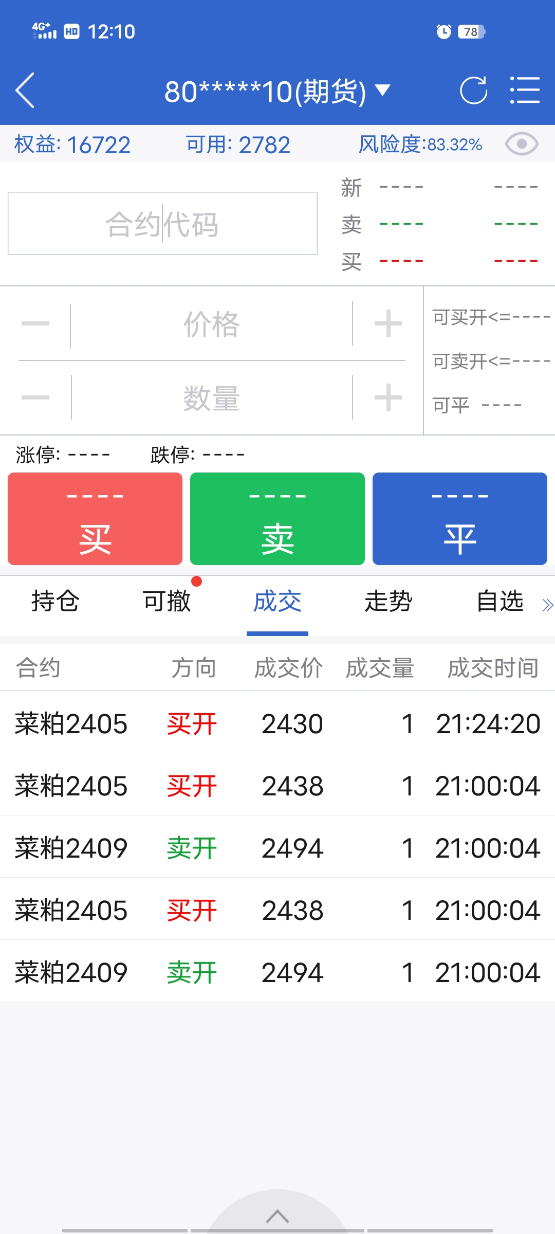 按计划挂单2565成交,2534进,正300块。粕跌油小涨。原来计划出粕进油的,结果油没跌下来又上了,估计晚上可以再进粕了,呵呵。