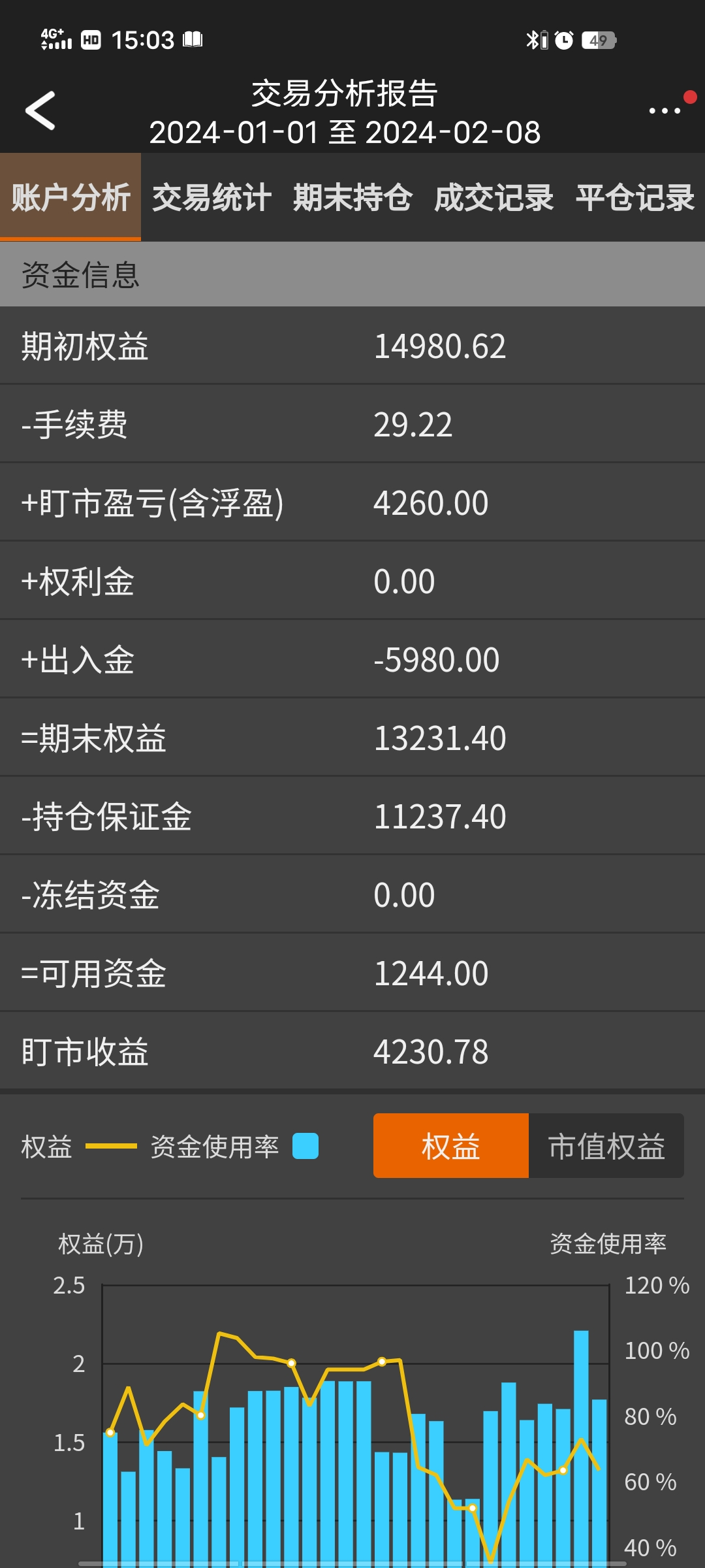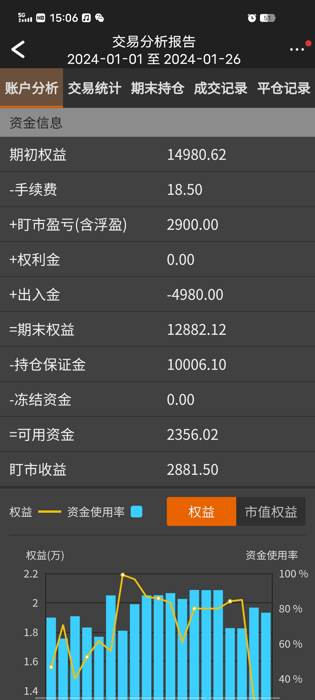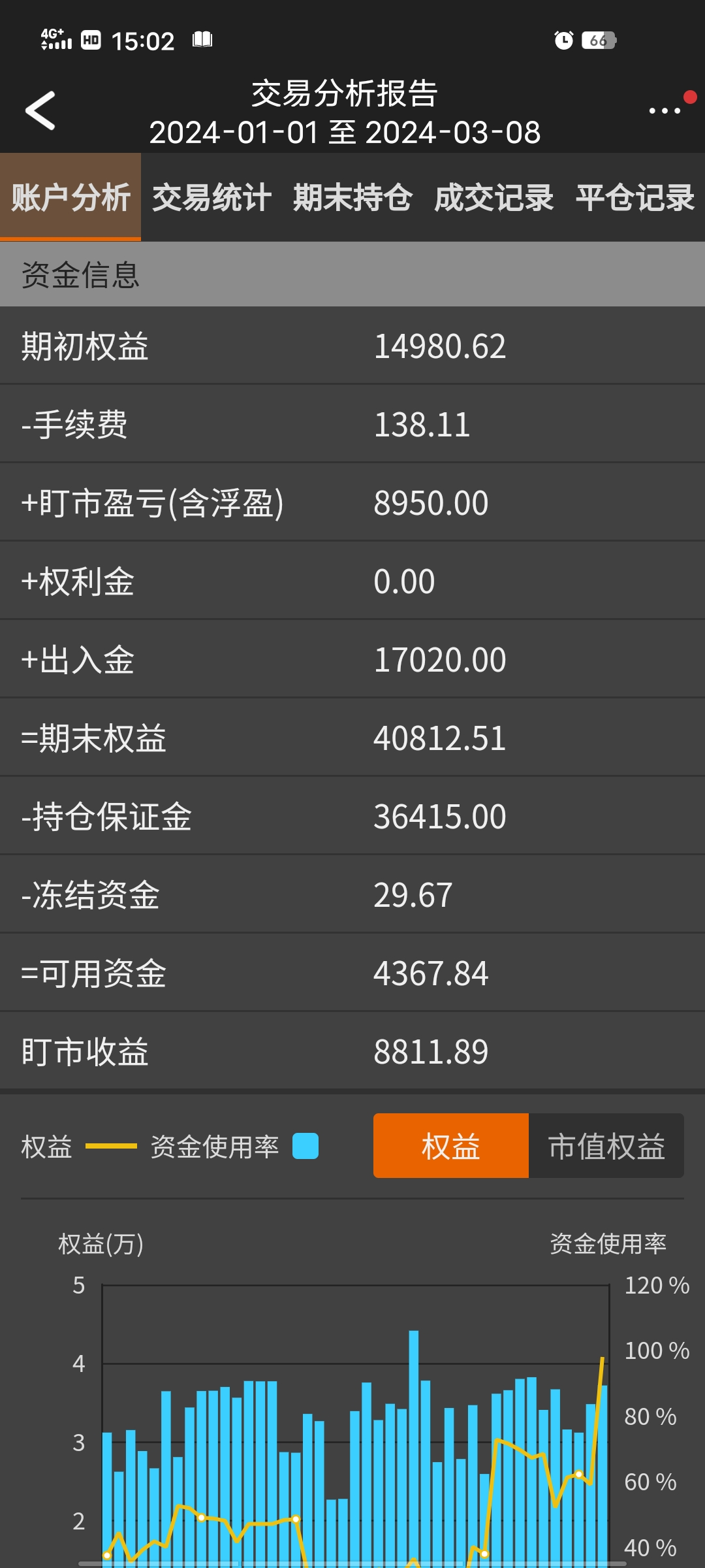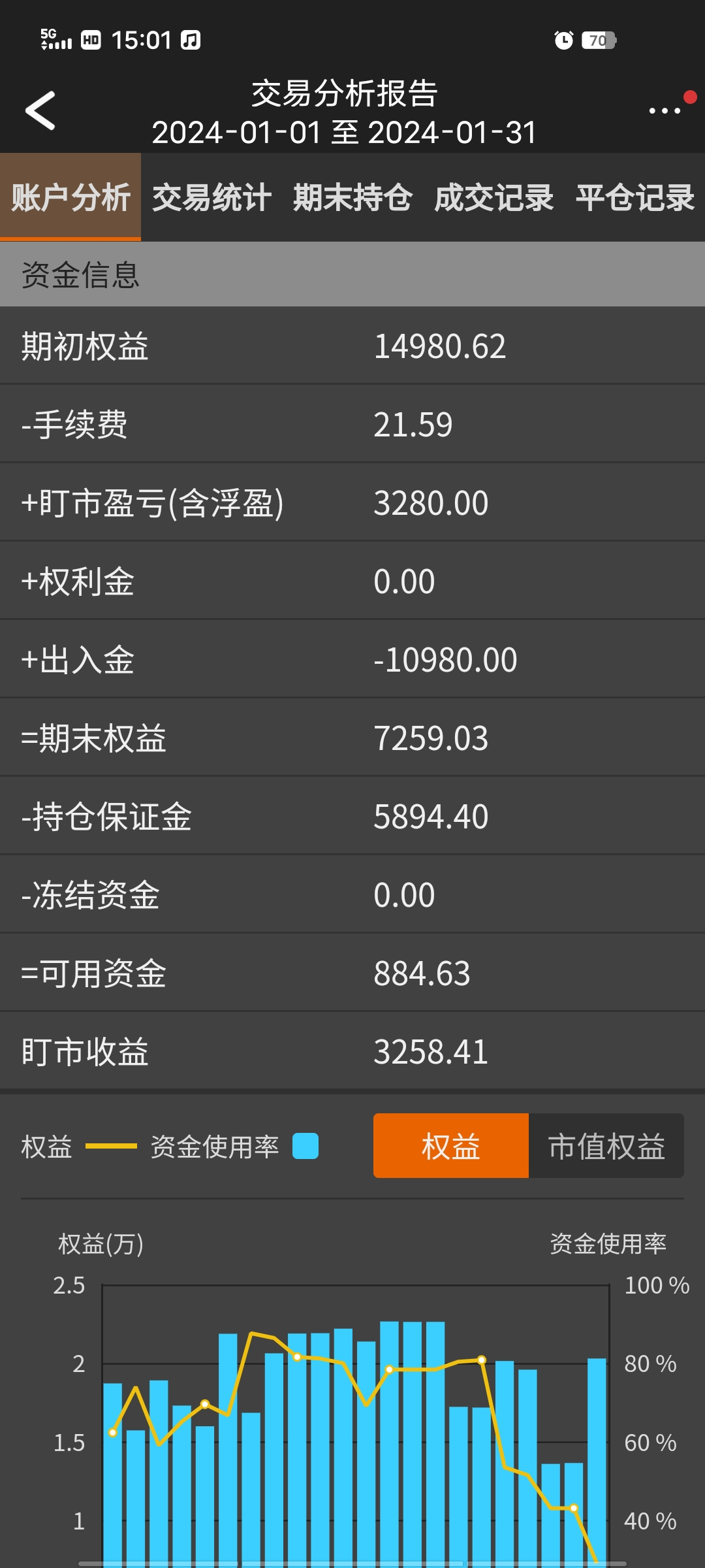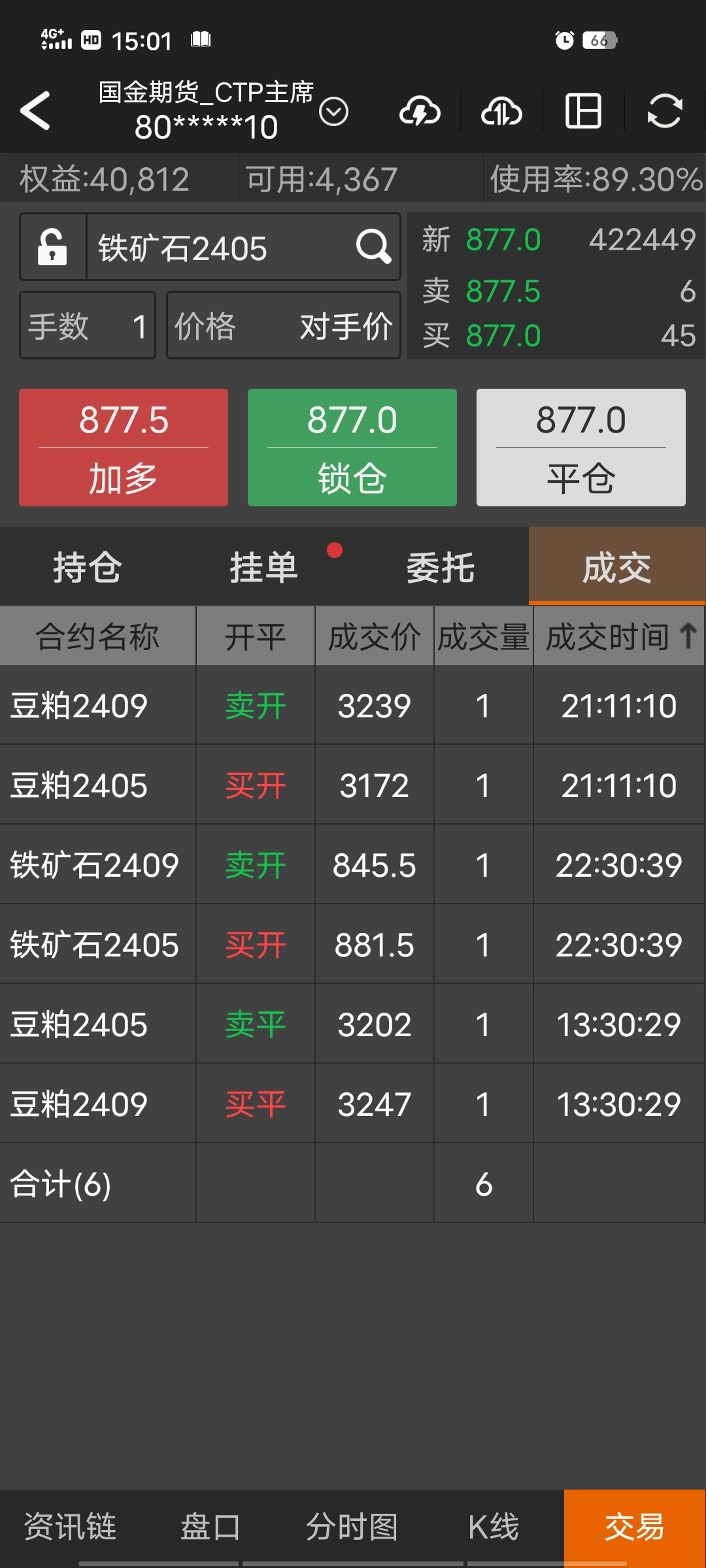 挂41.5成交铁套,28.5进,正1250。期末正1.81万。持有粕套2手。铁真牛,800.5卖出,现在847了。不看不看了,呵呵。今年的目标基本完成了,后面就稳一点。