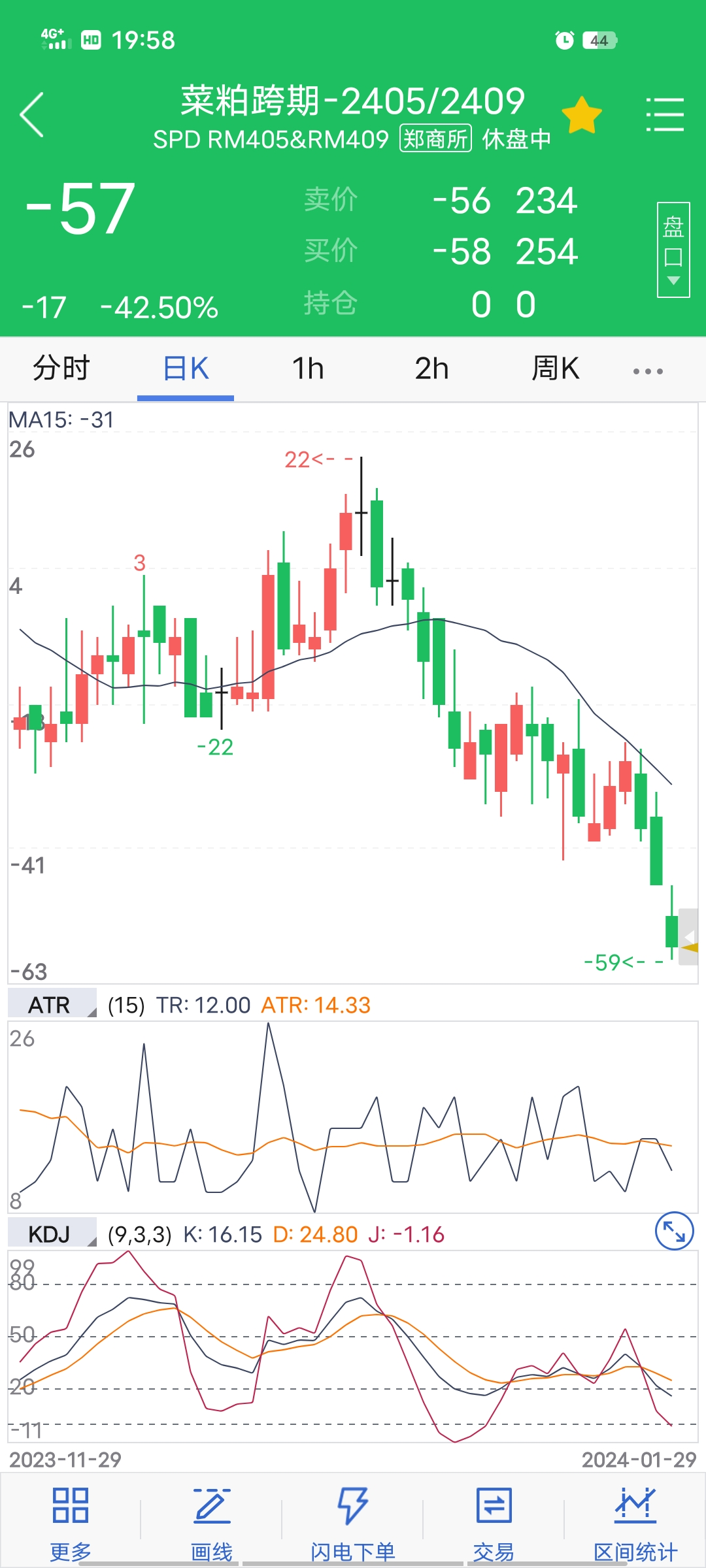 油条件单3085成交,2967进,正1170。按计划负43加一手粕套。还持有一手油,3011。粕一手2660。期末正2800块,还可以。没有非计划操作。 基金继续网格,060不知抽什么风,跌7点。期末负7400块。本周还可以,比前两周强,偷笑。怎么多05空09菜粕啊,做套利吗