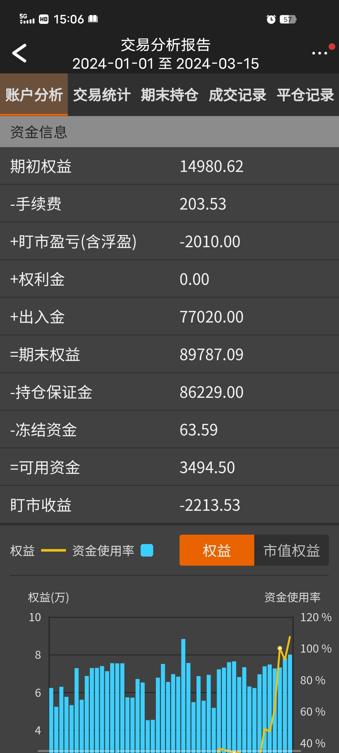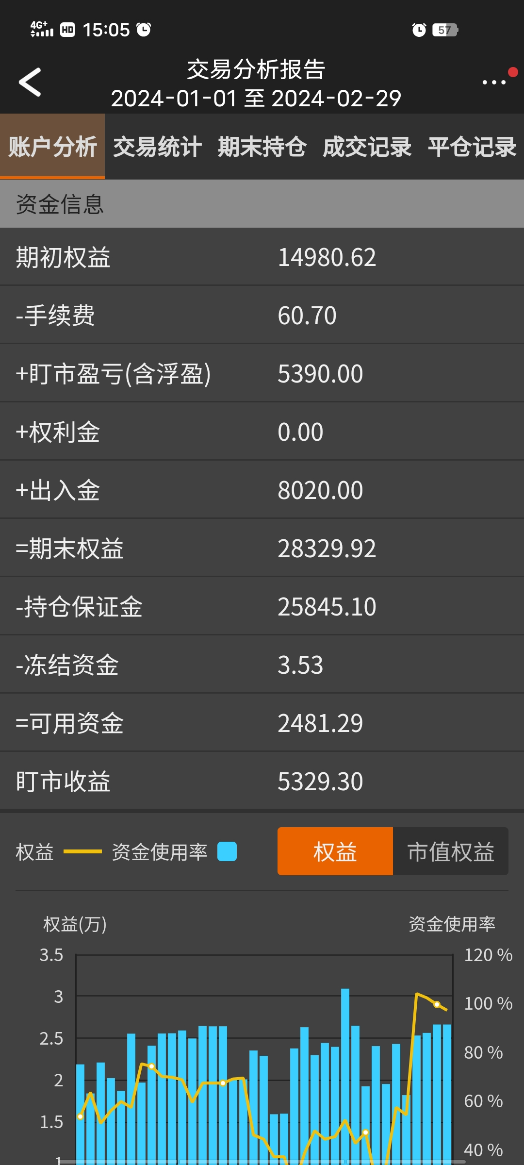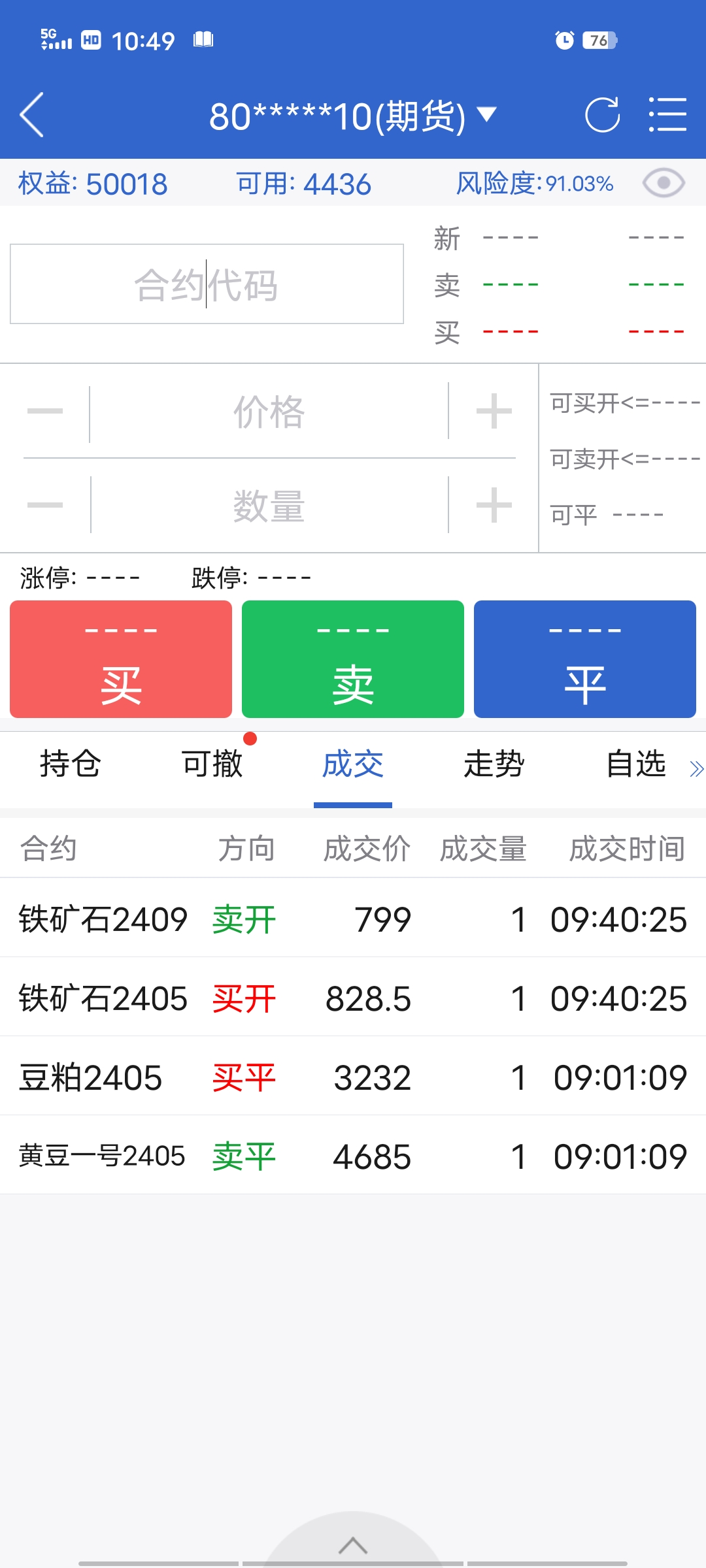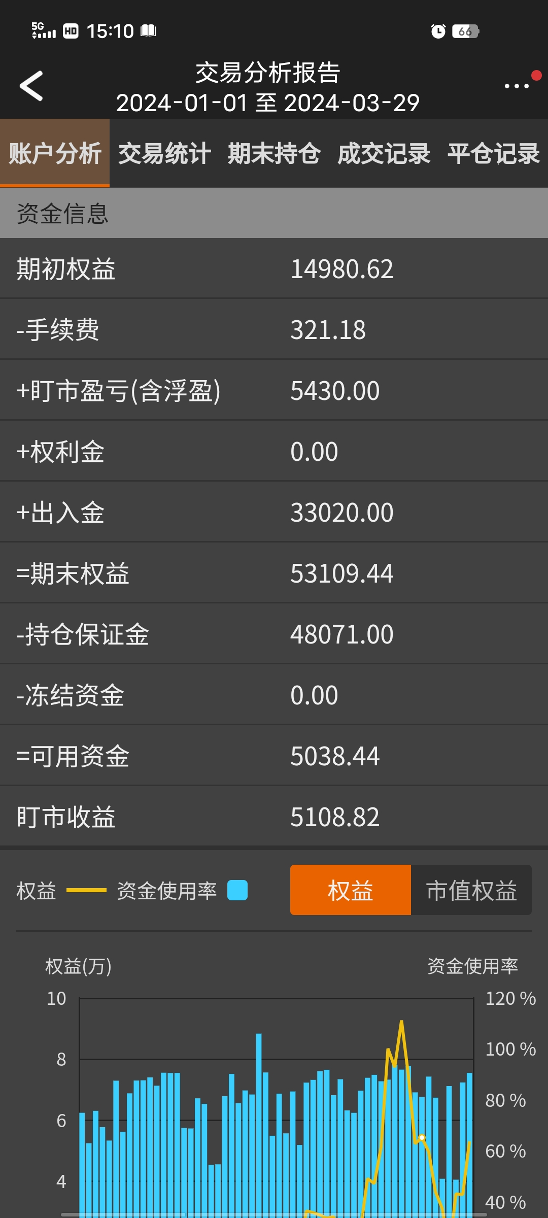 豆粕套负67进,负45成交,正210块,铁套36加一手,都是按计划,就是手续费贵了点,偷笑。盈利快1万,稳一点。期末正8800块,持有铁套48/36两手,豆/粕套一手1429。