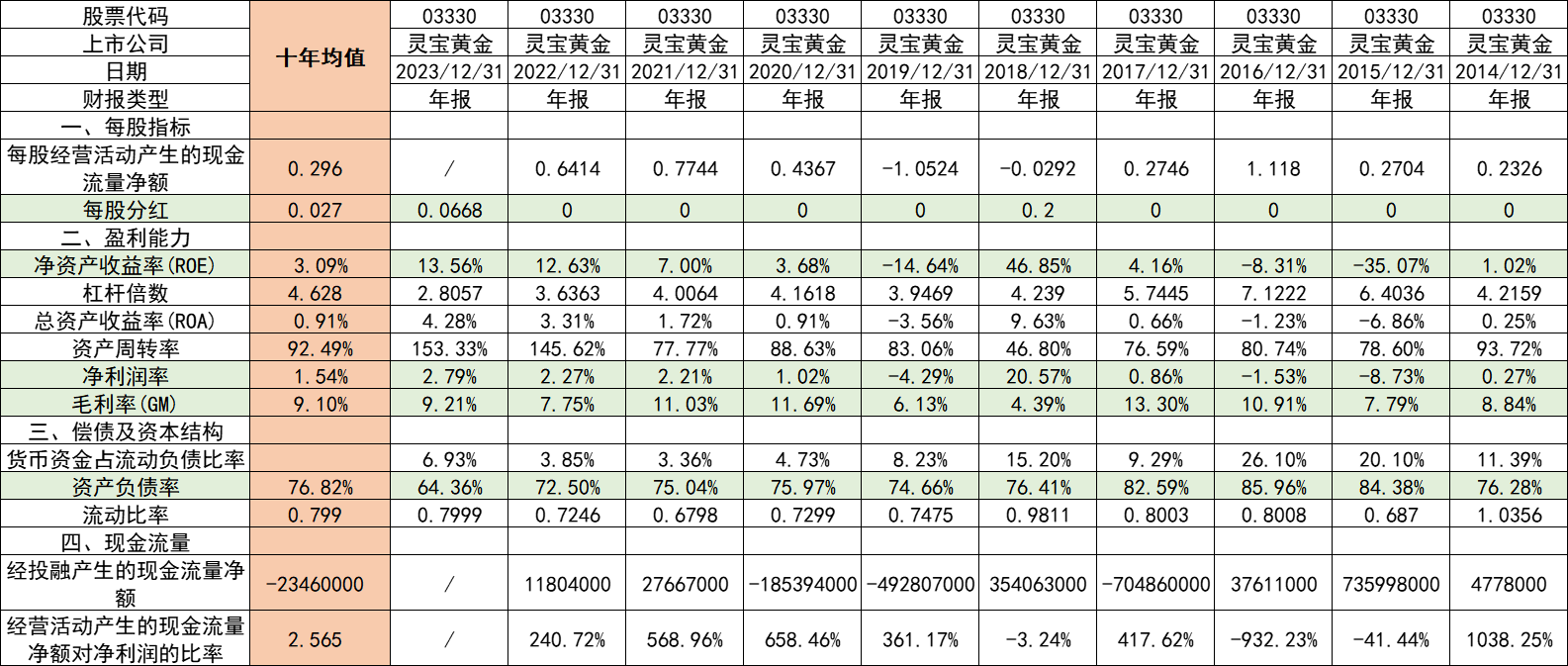 2017年,地产上行期,房地产行业量价齐升,在高杠杆的情况下,业绩被好几倍放大;而2024年,地产下行期,房地产行业量价齐跌,在高杠杆的情况下,业绩同样被双杀。而对于金矿股的投资一样如此,灵宝过去非常差,但随着金价上涨,在高杠杆的加持下,就会形成量价齐升的双击。灵宝黄金的未来,拭目以待。