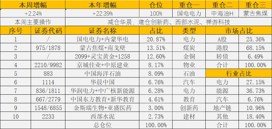 -2.75%/+25.38%/100%/国电电力/南戈壁/中海油H