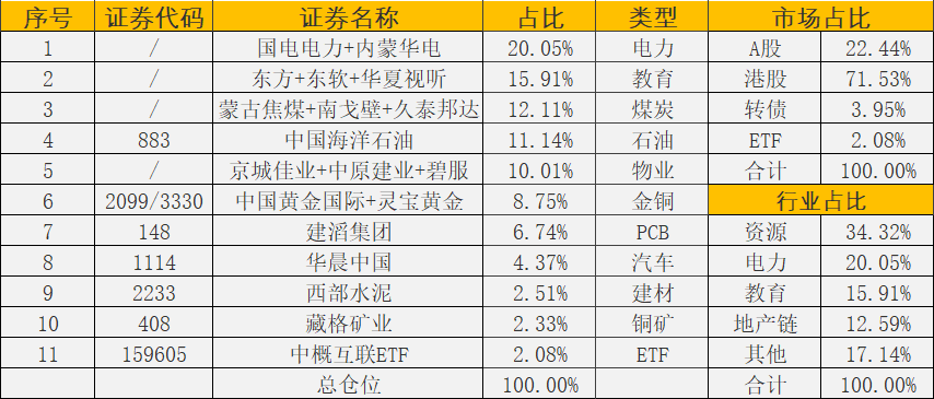 持仓中主要持有两个内需板块:物业+高教。