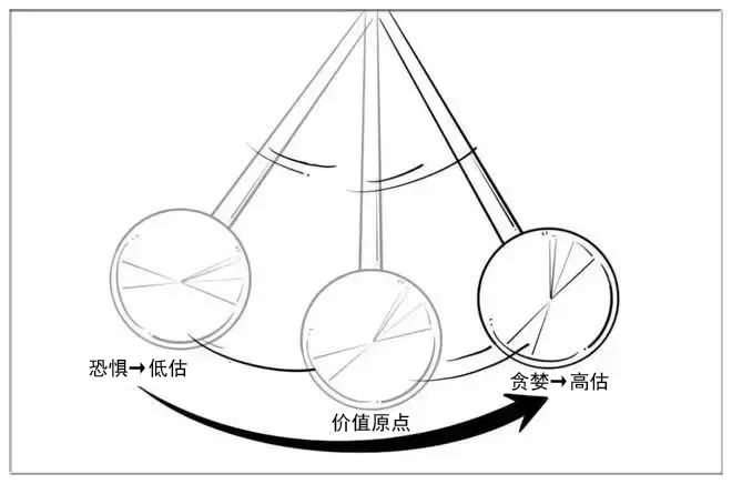 最近在读霍华德·马克斯的《周期》这本书,有一章印象深刻,说的是【投资人心理和情绪钟摆】,把股市中投资人的情绪波动比作钟摆运动,这个钟摆来回摆动,形成一道弧线,弧线的中心点完美地描述了这个钟摆的“平均”位置。但是事实上,钟摆待在这个弧线的中心点位置的时间极短,一晃而过。相反,钟摆几乎大部分时间都在走极端,弧线两端各有一个极端点,钟摆不是在摆向极端点,就是在摆脱极端点。但是每当钟摆接近极端点的时候,不可避免的结果是,钟摆会反转方向摆向弧线的中心点,或早或晚,反正肯定会反转。