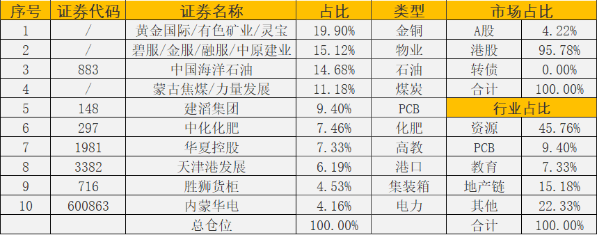 第一种是十倍股策略,意味着该标的具有十倍潜力,同时也说明该标的有比较多的缺点,主要体现在常年不派息(南戈壁)、管理层有瑕疵(好孩子国际、灵宝黄金)、有息负债高企(西部水泥)等,但是瑕不掩瑜,这些公司都有自己独特的竞争优势,可以作为超强进攻配置。