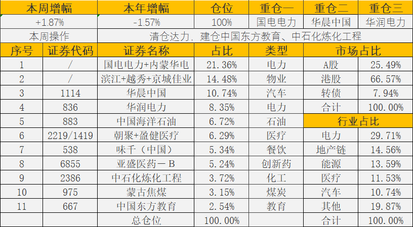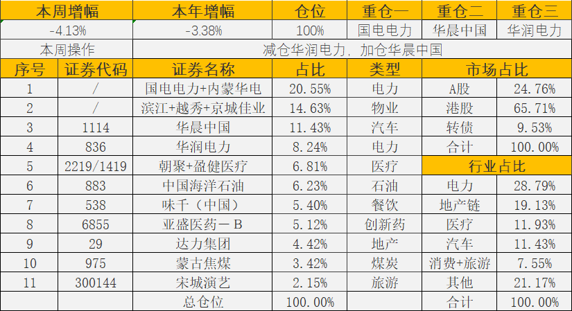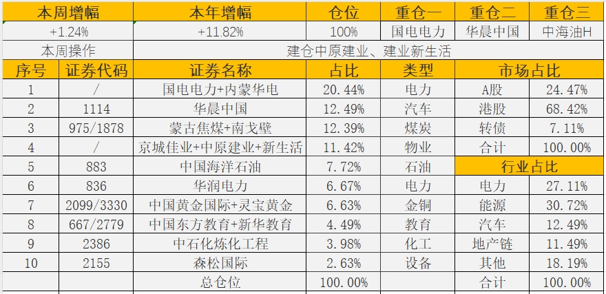 电力与海油均作为防守仓位在配置,而地产链则是防守中带着进攻。