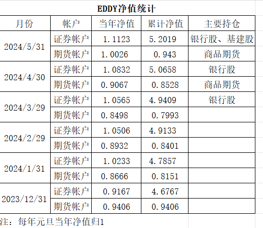期货帐户今年净值回归1,扭亏,继续努力把去年亏的捞回来!