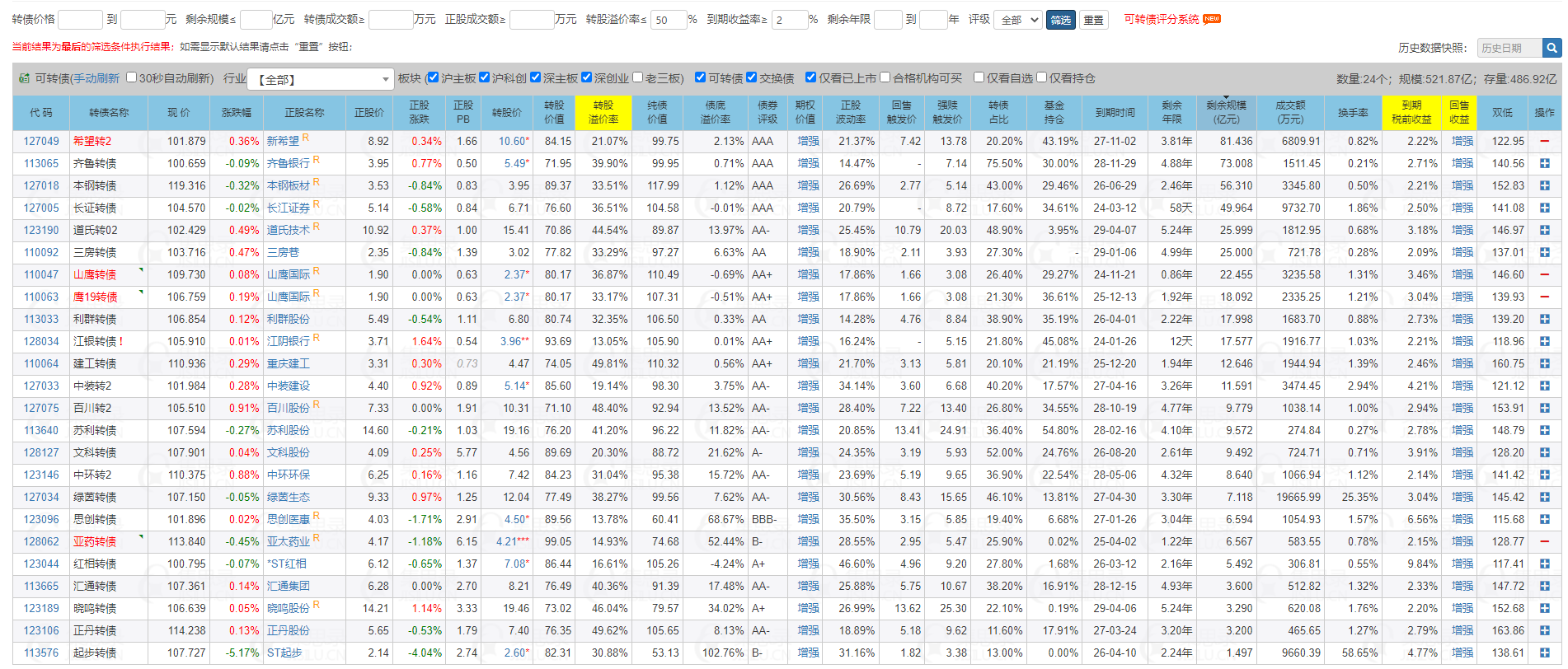 游资的胃口是不可预测的,分散买入当然是很好的方式,但是遇到了类似2023年这样,全年不拉高溢价,一直熬到投资者情绪崩坏的情况又怎么办呢。所以我们的布局应该有侧重点,要讲求价值投机。去选择有下修压力和下修想法的公司逐步潜伏,把游资光临当成意外的惊喜,去守住价值投资的原本方式。