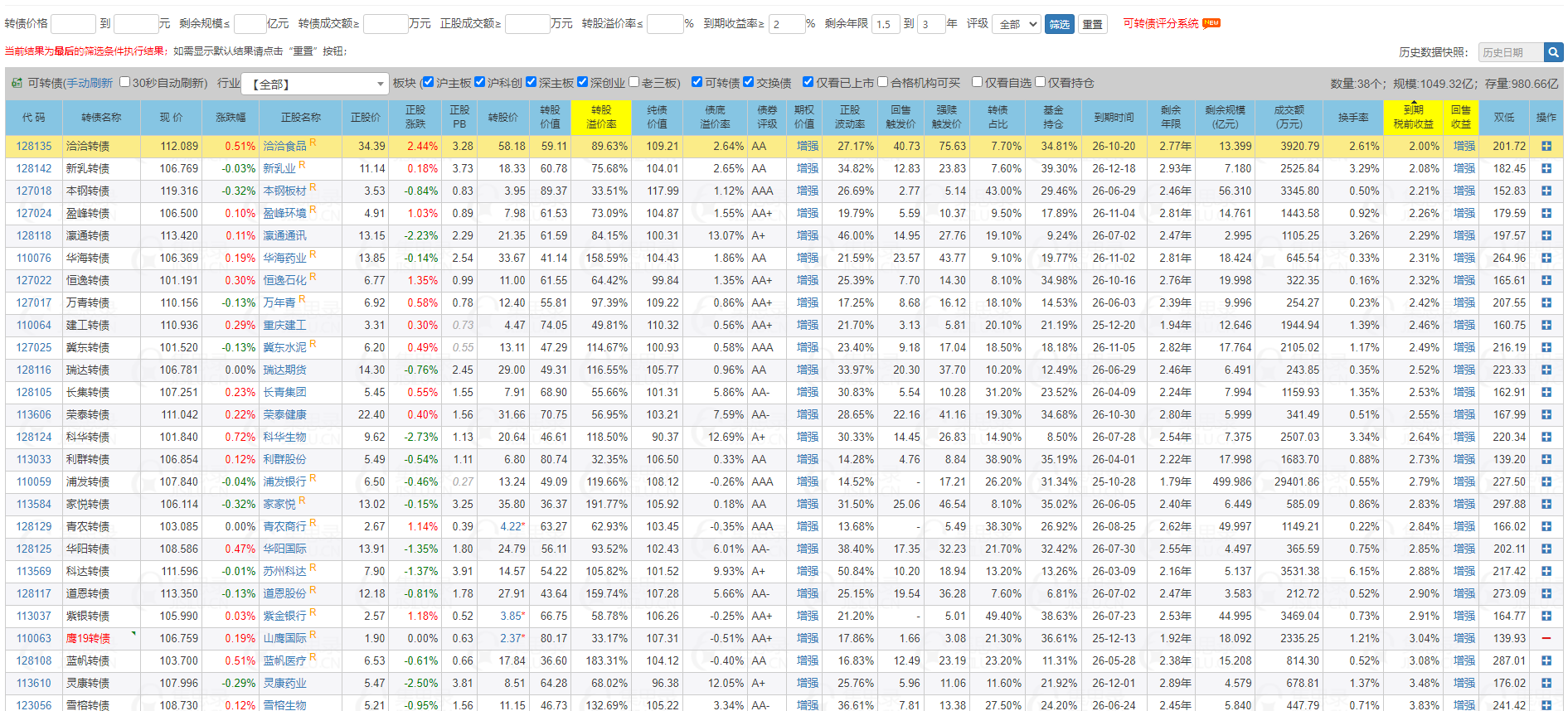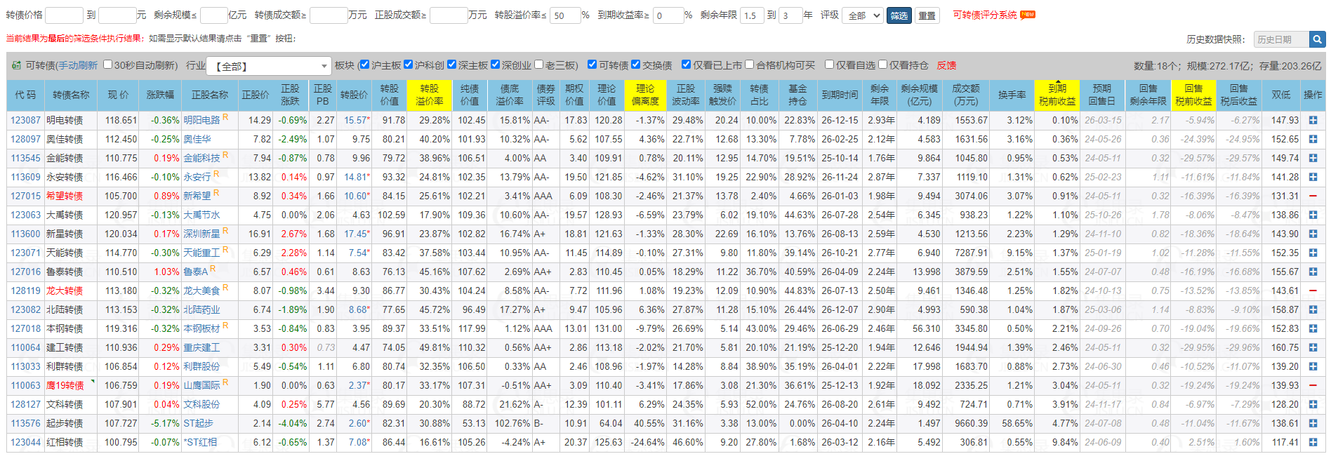 但是一般状况下,在一年内到期的转债,如果没有被市场质疑有偿债风险。他们是很少能够出现足够的到期收益,而且随着期权价值的丧失,几乎不用拉到强赎价格便会出现负溢价。所以除非能够抓住好的机会,一般很难得到低风险的投资机会。
