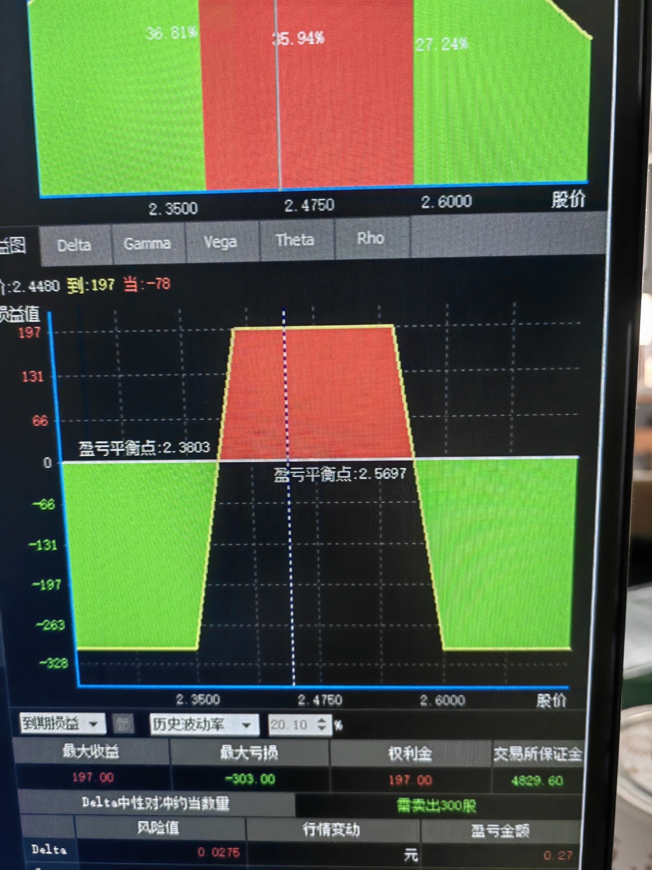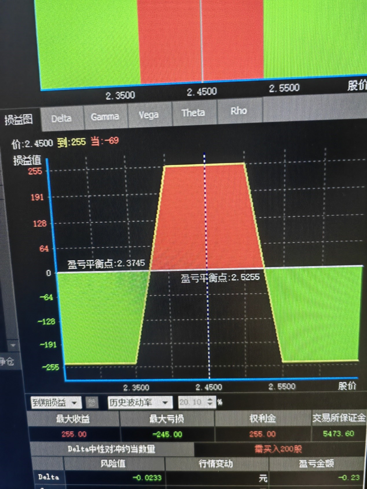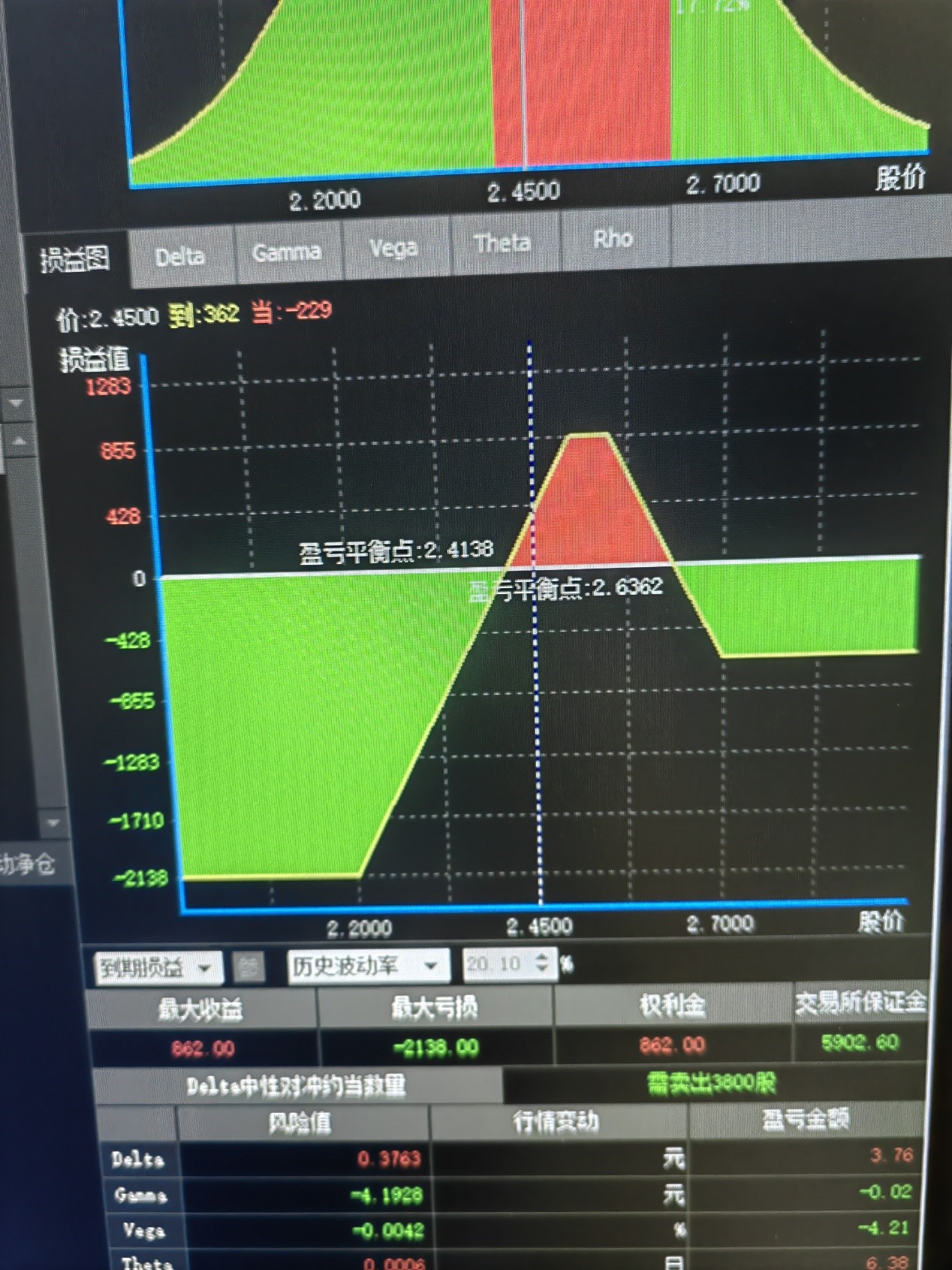 到期下行盈亏平衡点:2.3745