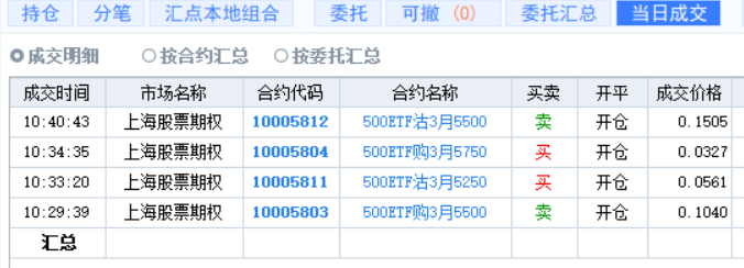 对比始终持有5500沽的话,目前市值为0.1538元,持仓盈亏-0.1538元。
