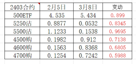 假设期初某位投资者持有3月5250沽或者5500沽,在2月5日被深度套牢后为了防止继续崩盘的风险,平仓换成4500购或者4700购的情况。
