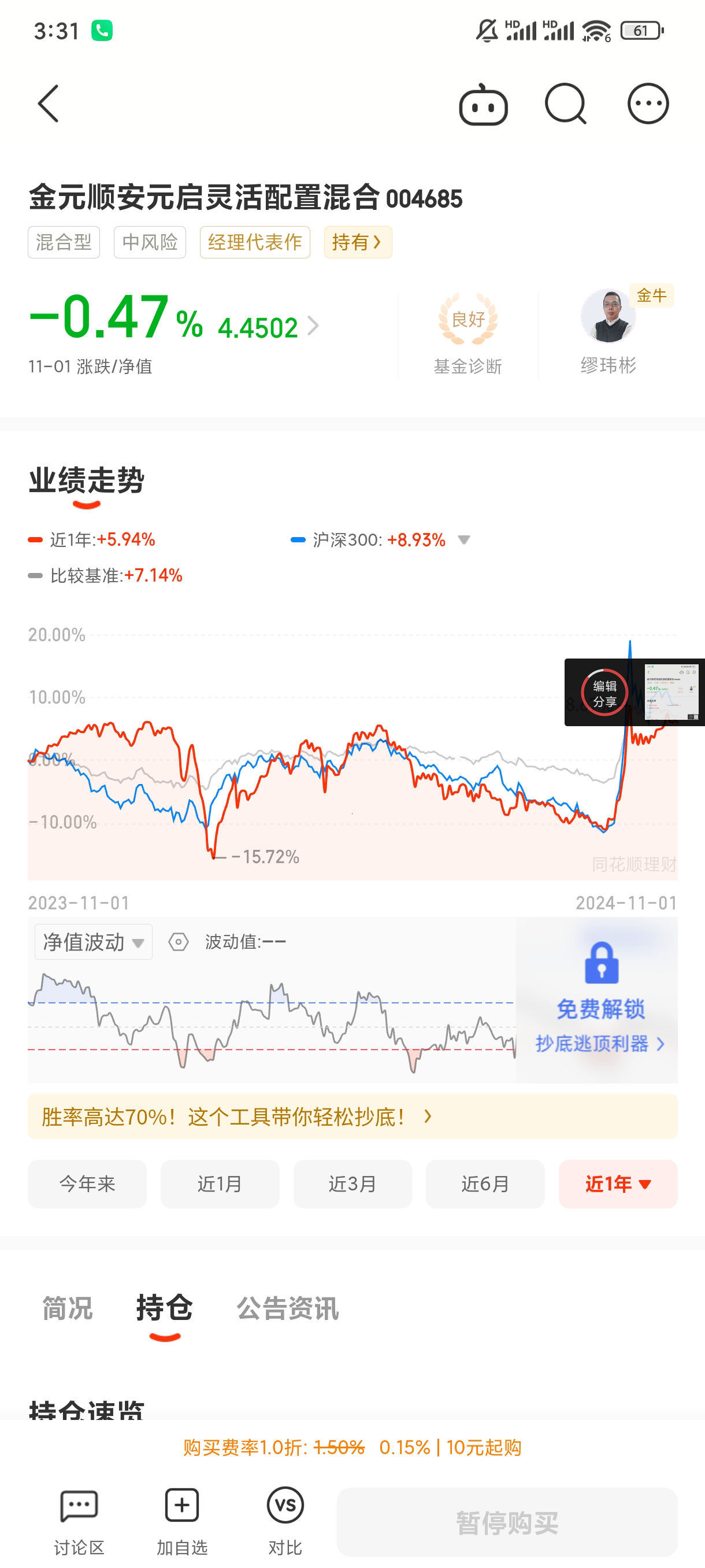 3.金元顺安元启004685是神基,小市值倾向,小市值优质股收益率高,流动性低,所以大基金其实没法操作。