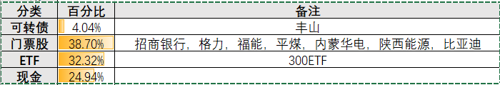 基本平盘,仓位61%,其中门票44%,300ETF17%.