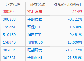 持仓品种:地产类(华发、建发),创业板159949、医疗器械159883和软件159899,人工智能159819。平安银行、少量华鲁恒升和永泰股份。