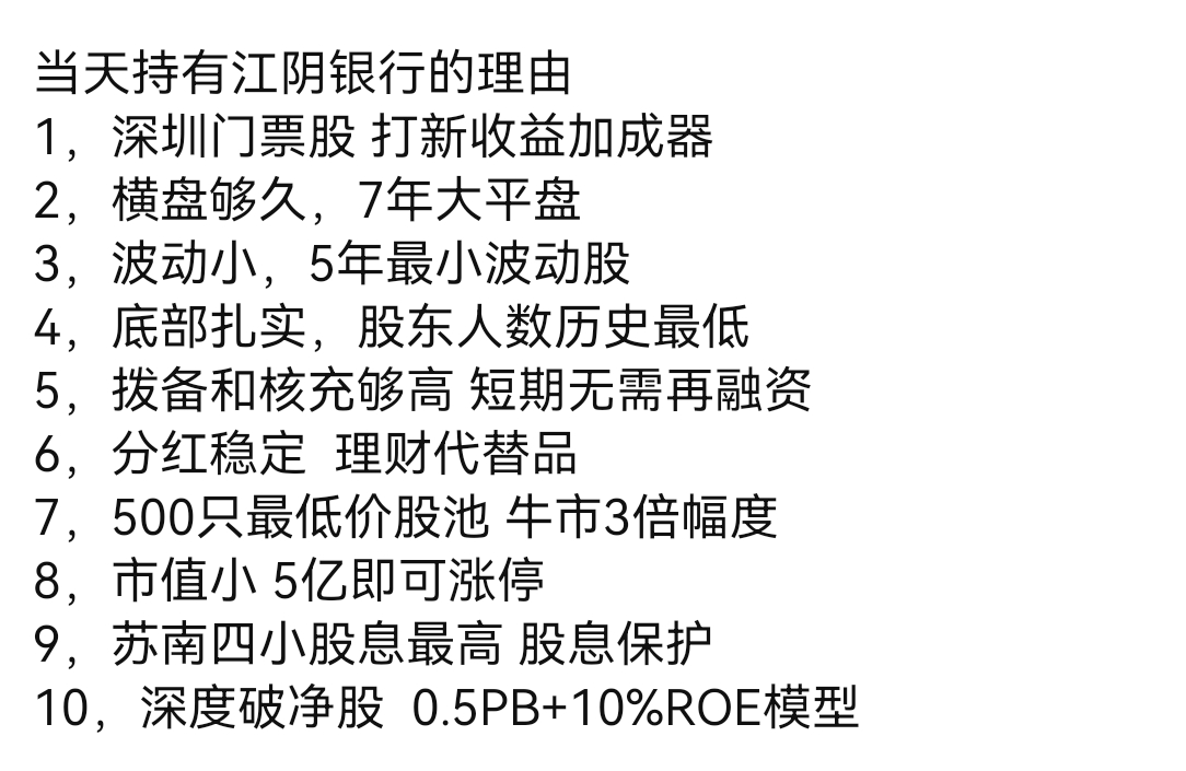 前面曾经说过,江阴有类似转债之处,从历史走势,看似有底,结合股息率和其他银行走势,姑且按有底逻辑考虑,待月底业绩公告再说。