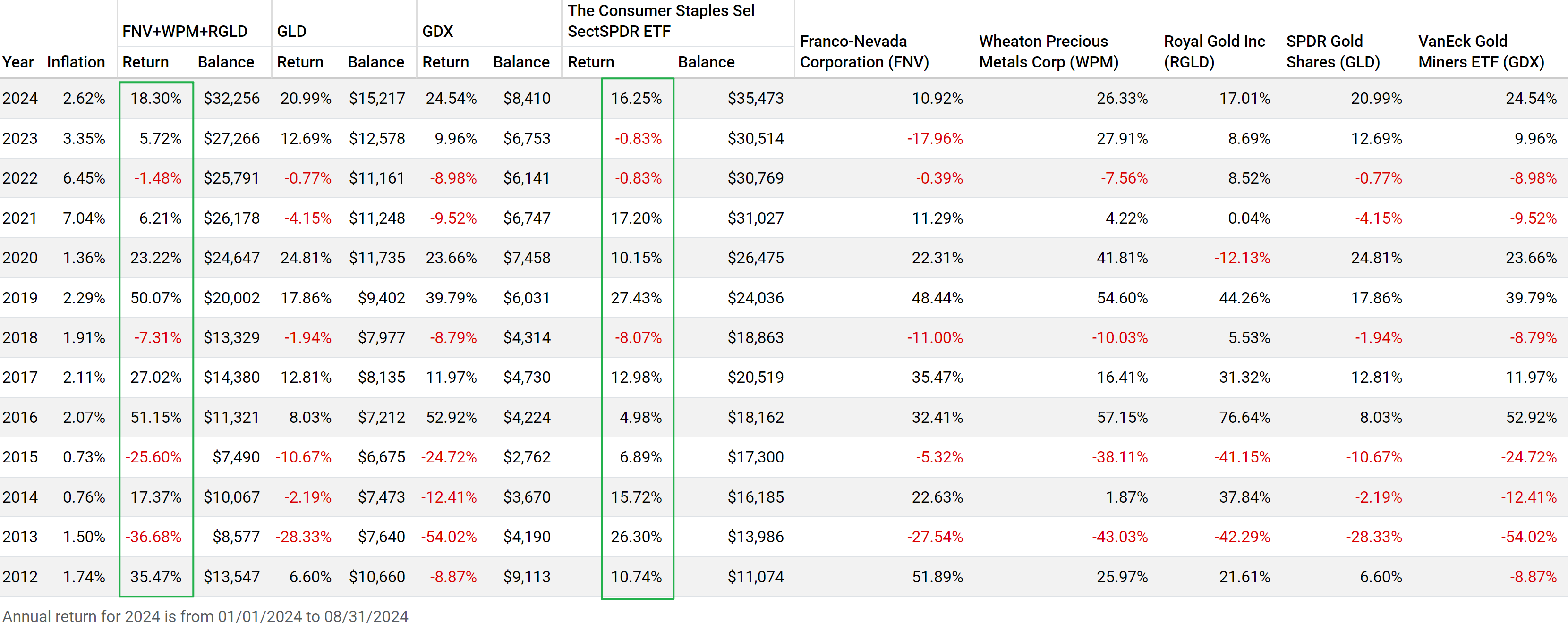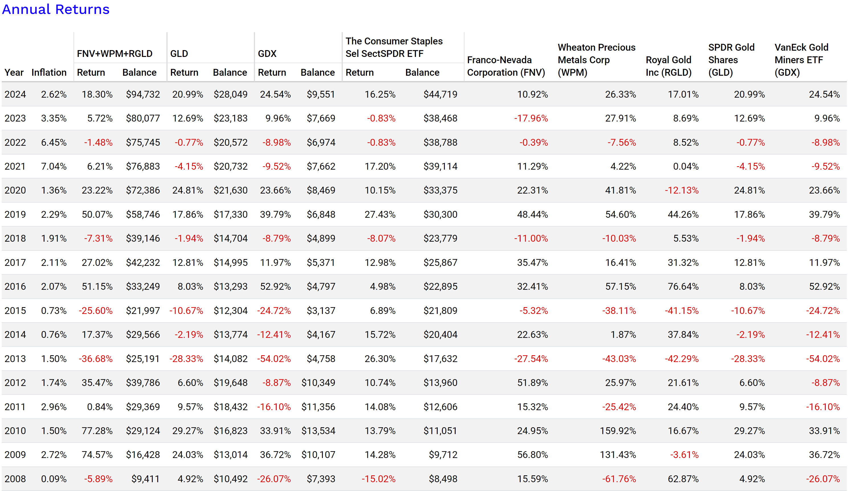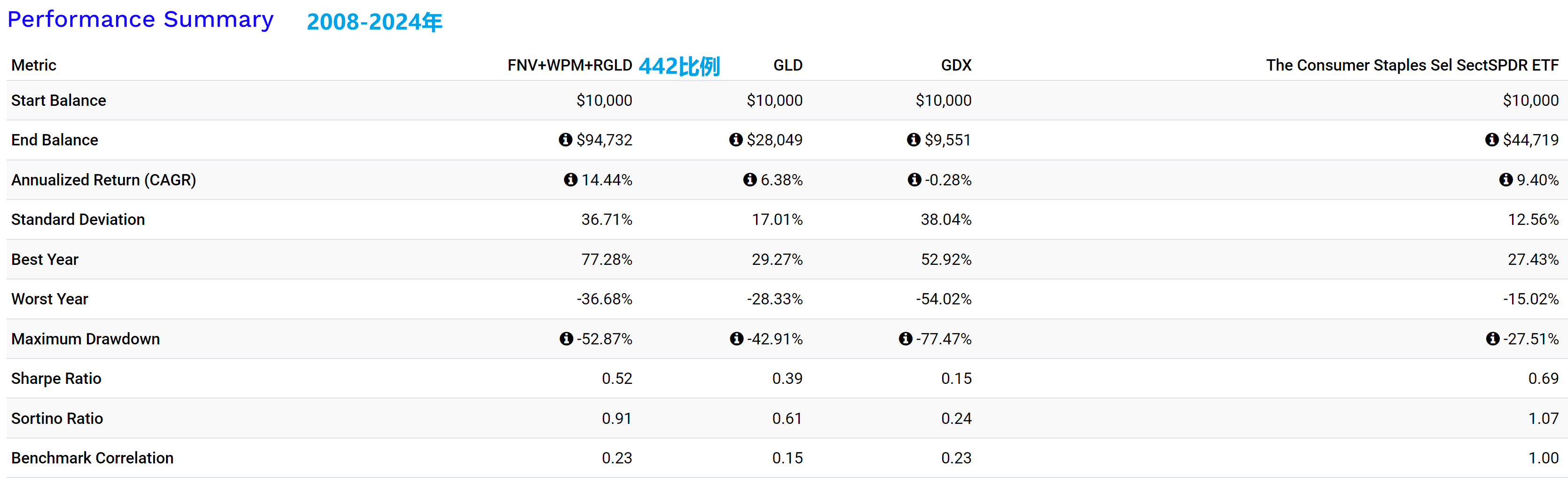 这种有三个股票:FNV、WPM、RGLD,我们按市值比例,442做一个组合,年度再平衡。