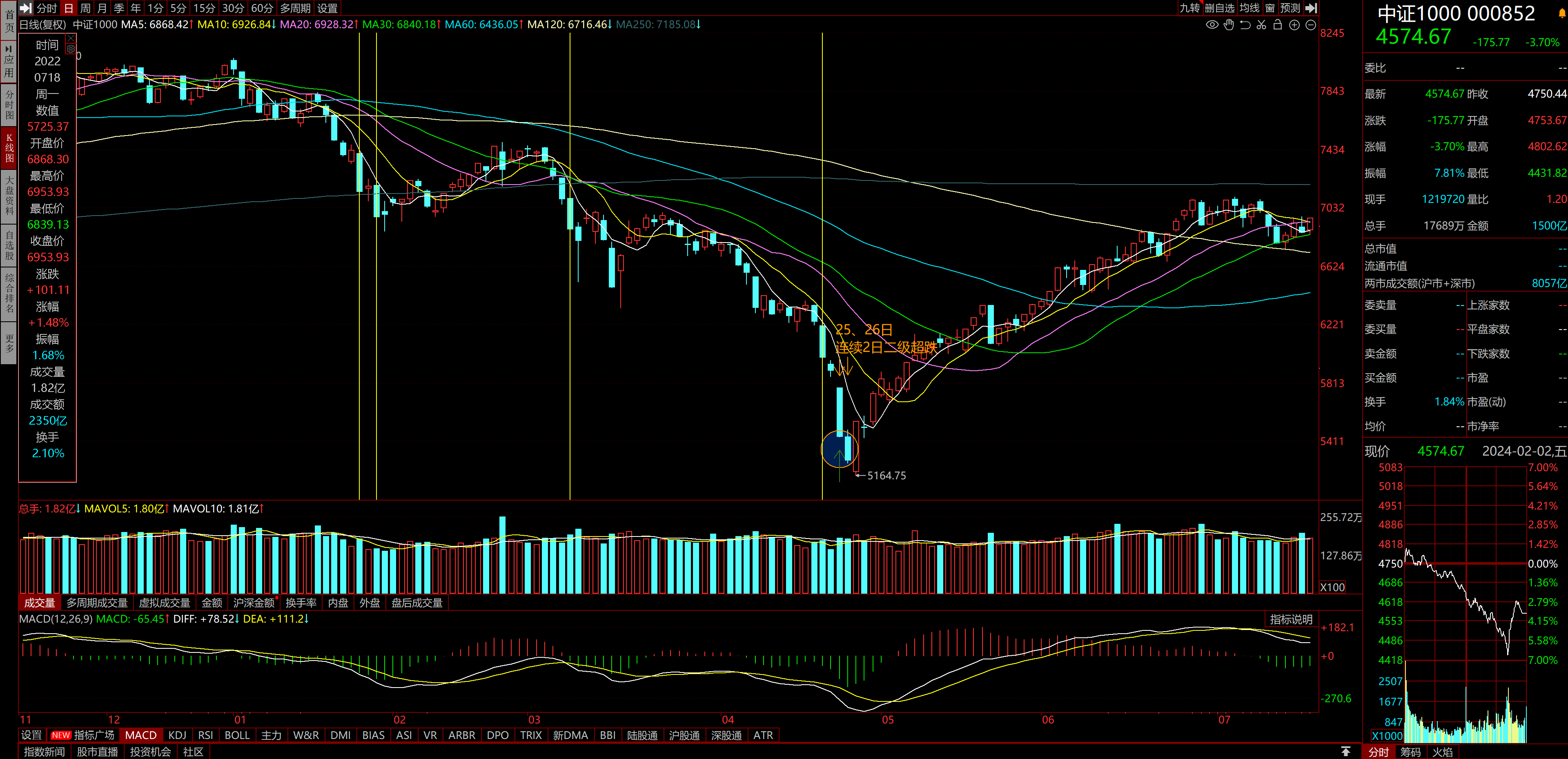 冷眼的短线系统是我知道的最牛逼的,连续2次二级超跌:- 22年4月25、26日,427大阳反弹,中证1000表现: