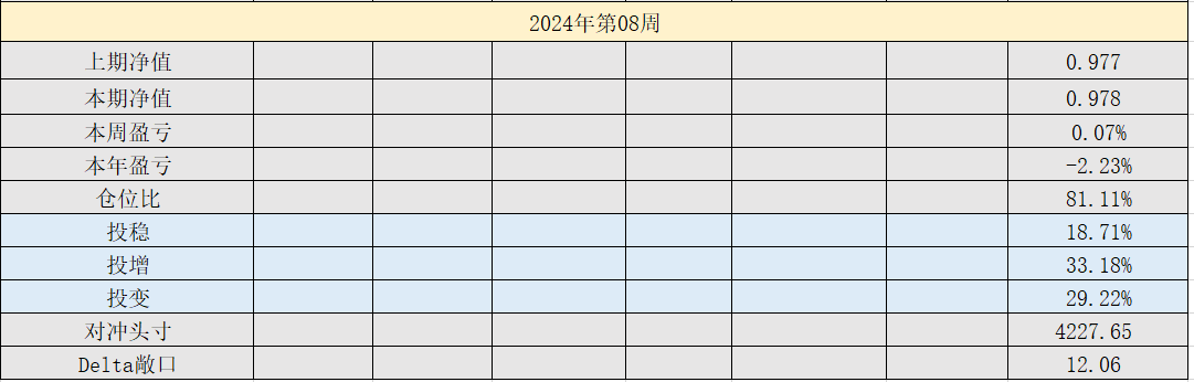 2024年2月末,净值:0.977,本年盈亏:-2.33%,总仓位:74%