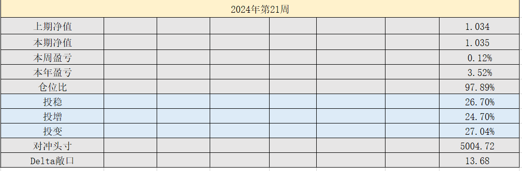 2024年5月末,净值:1.035,本年盈亏: 3.52%,总仓位:98%