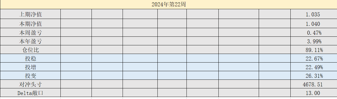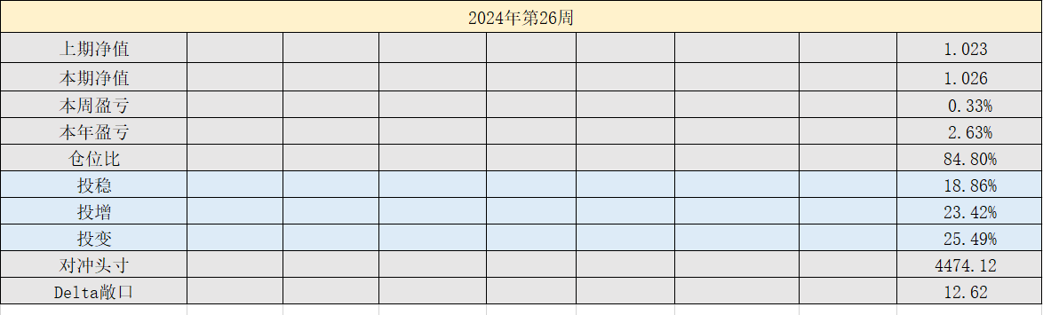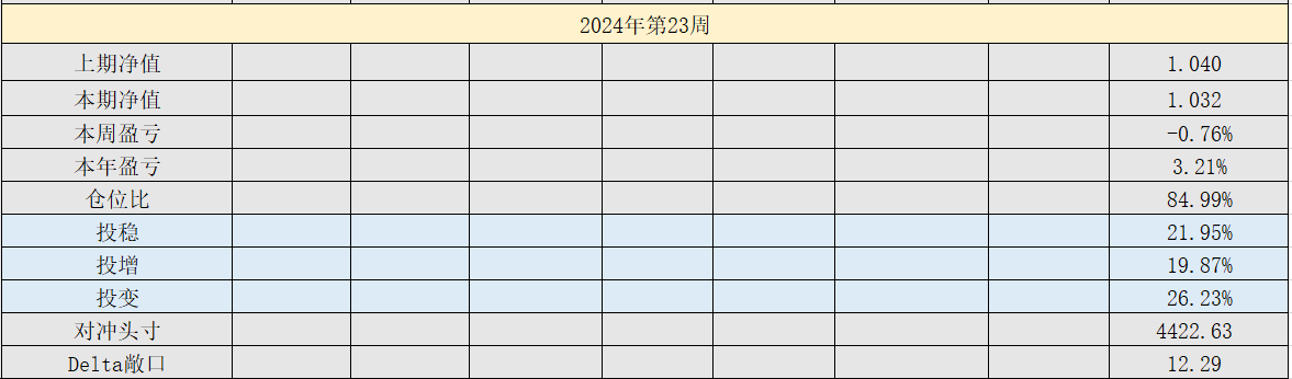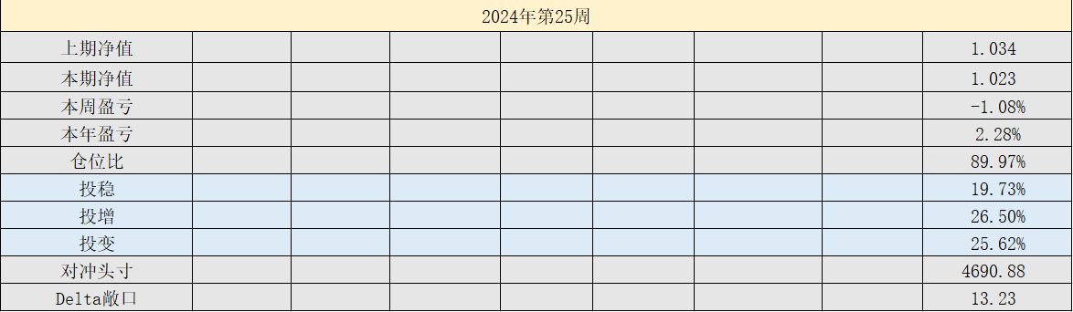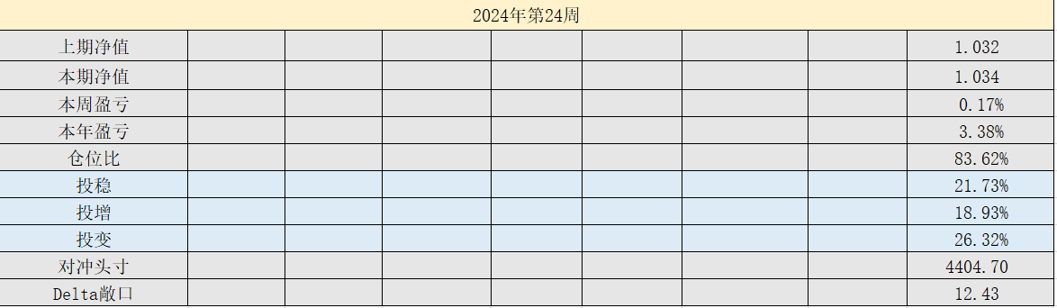 2024年6月末,净值:1.023,本年盈亏: 2.28%,总仓位:89%