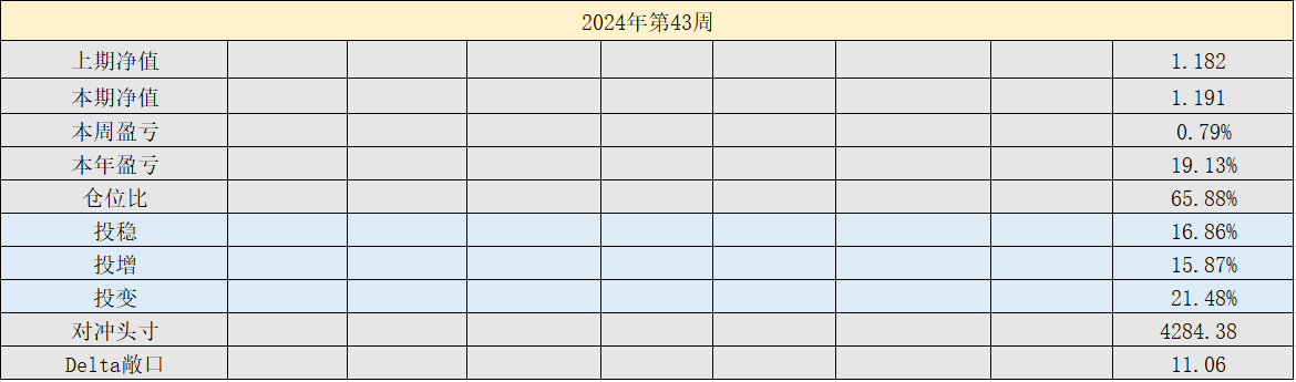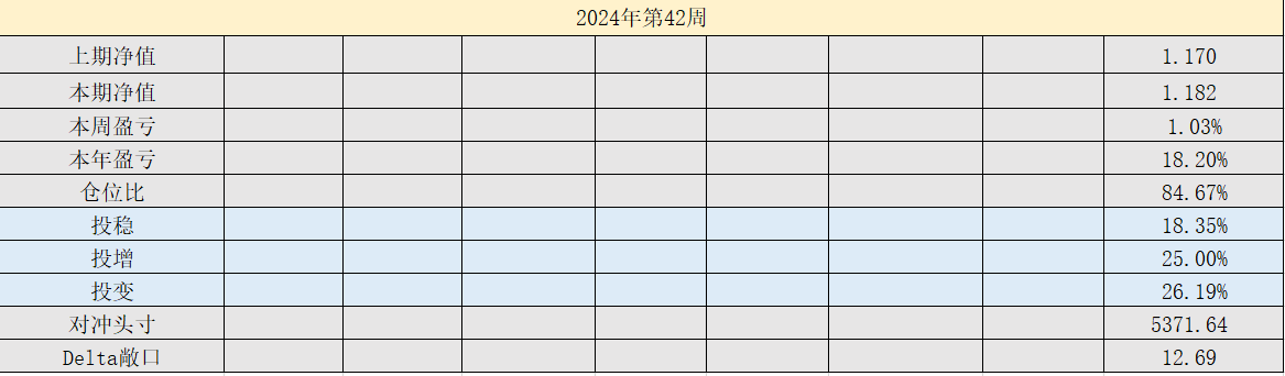 2024年42周,净值:1.182,本周盈亏:1.03%,本年盈亏:18.2%,总仓位:85%被反复操纵的市场,只想清仓,没有任何其他想法。