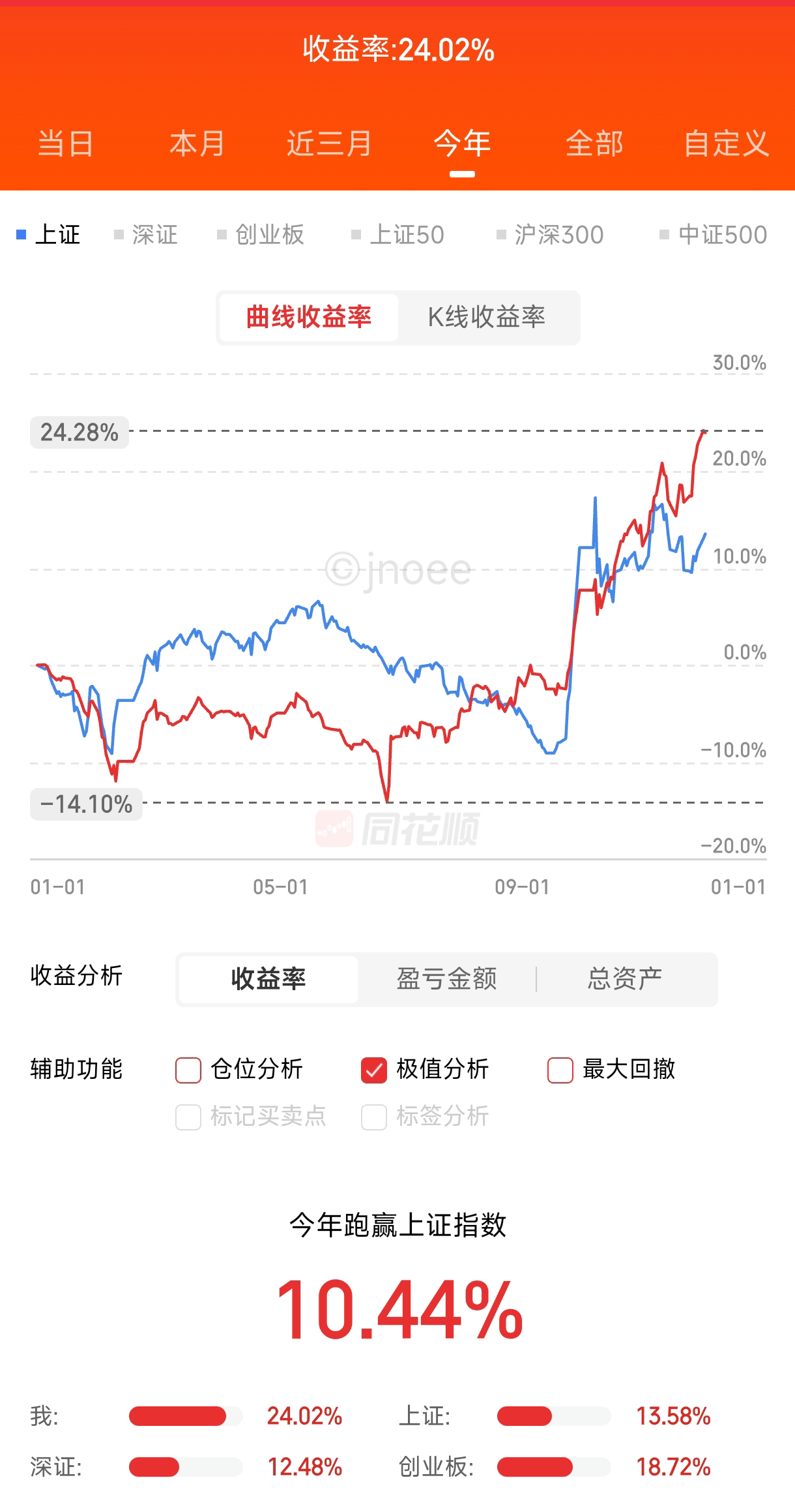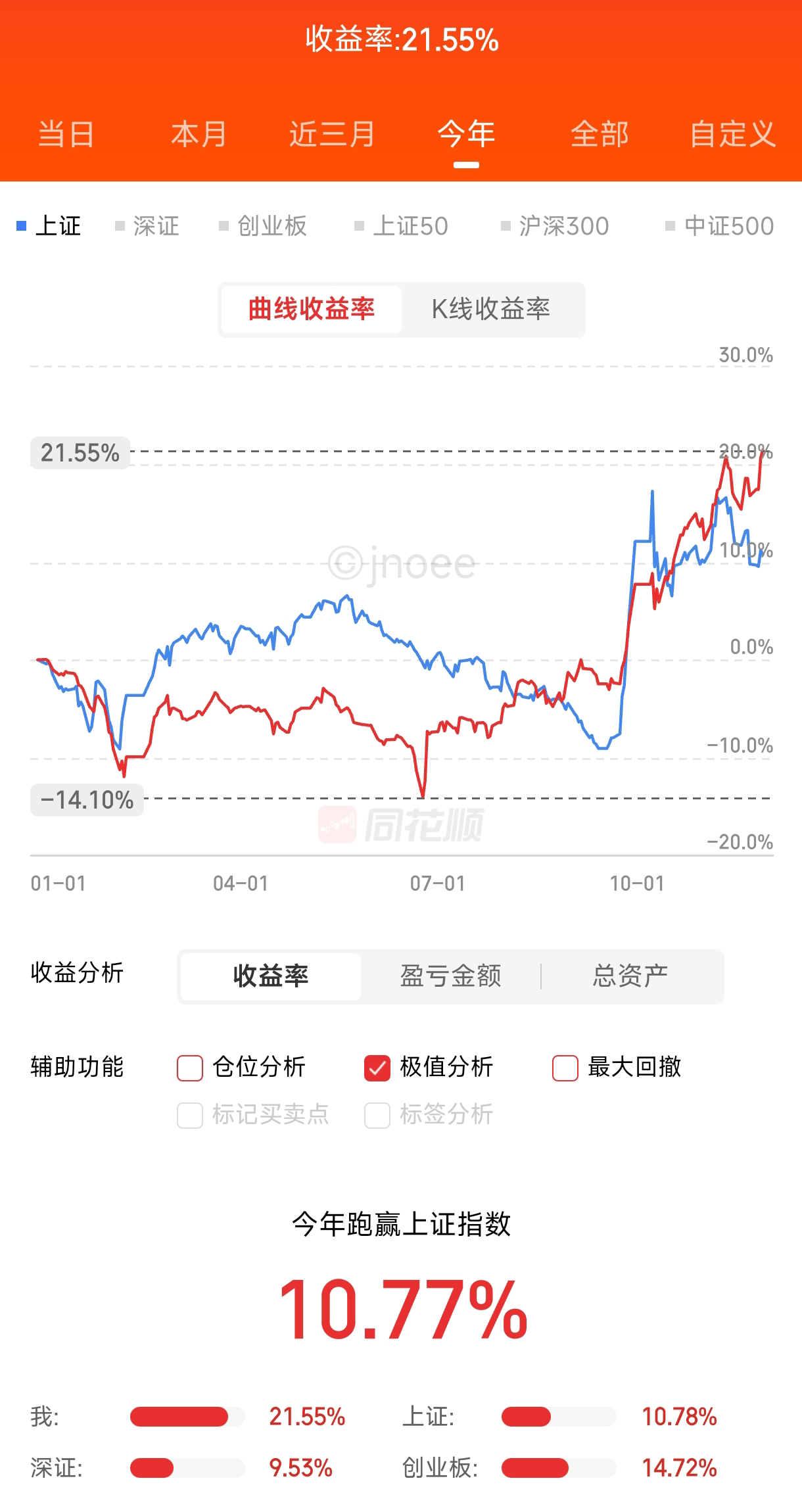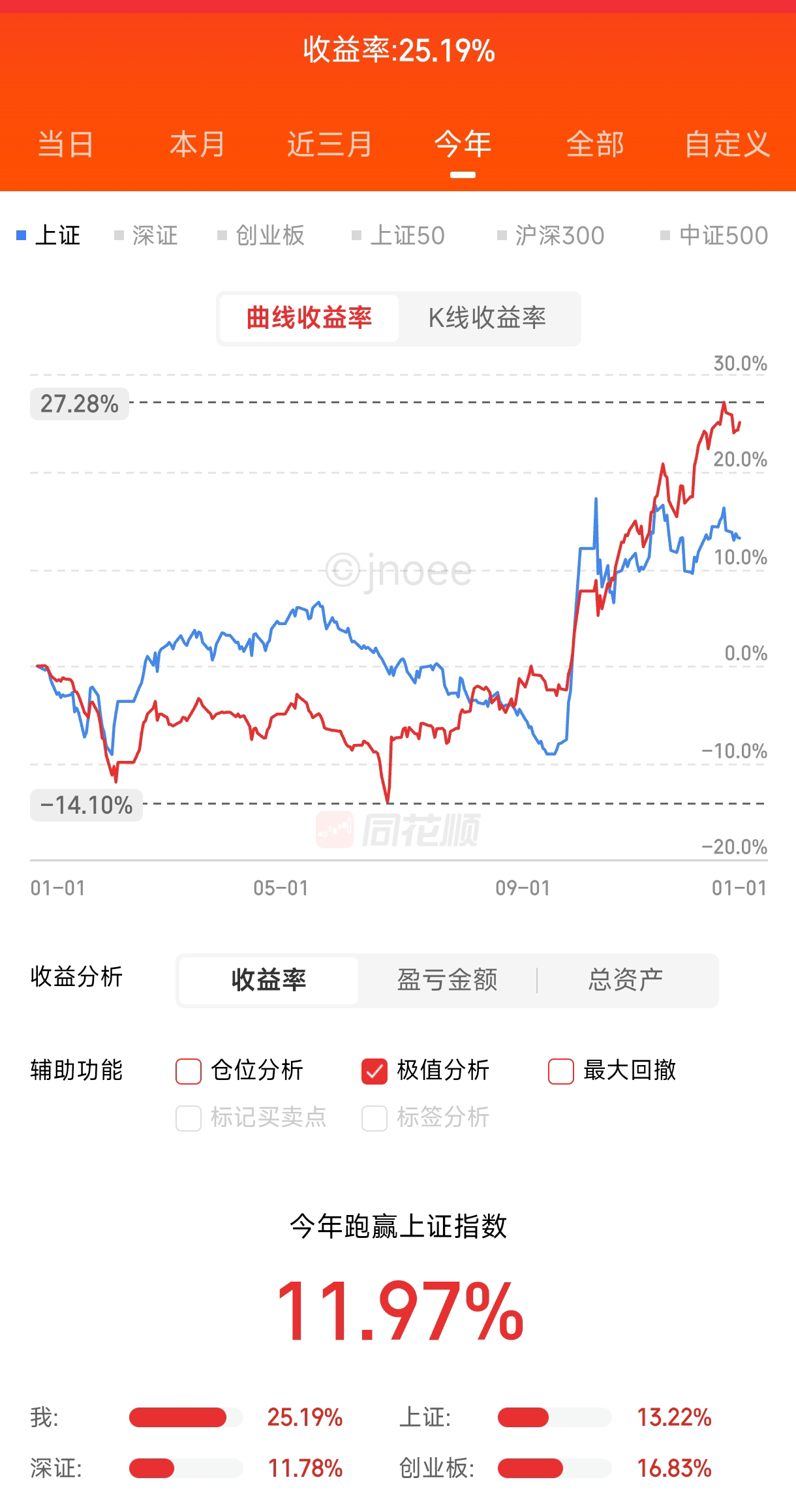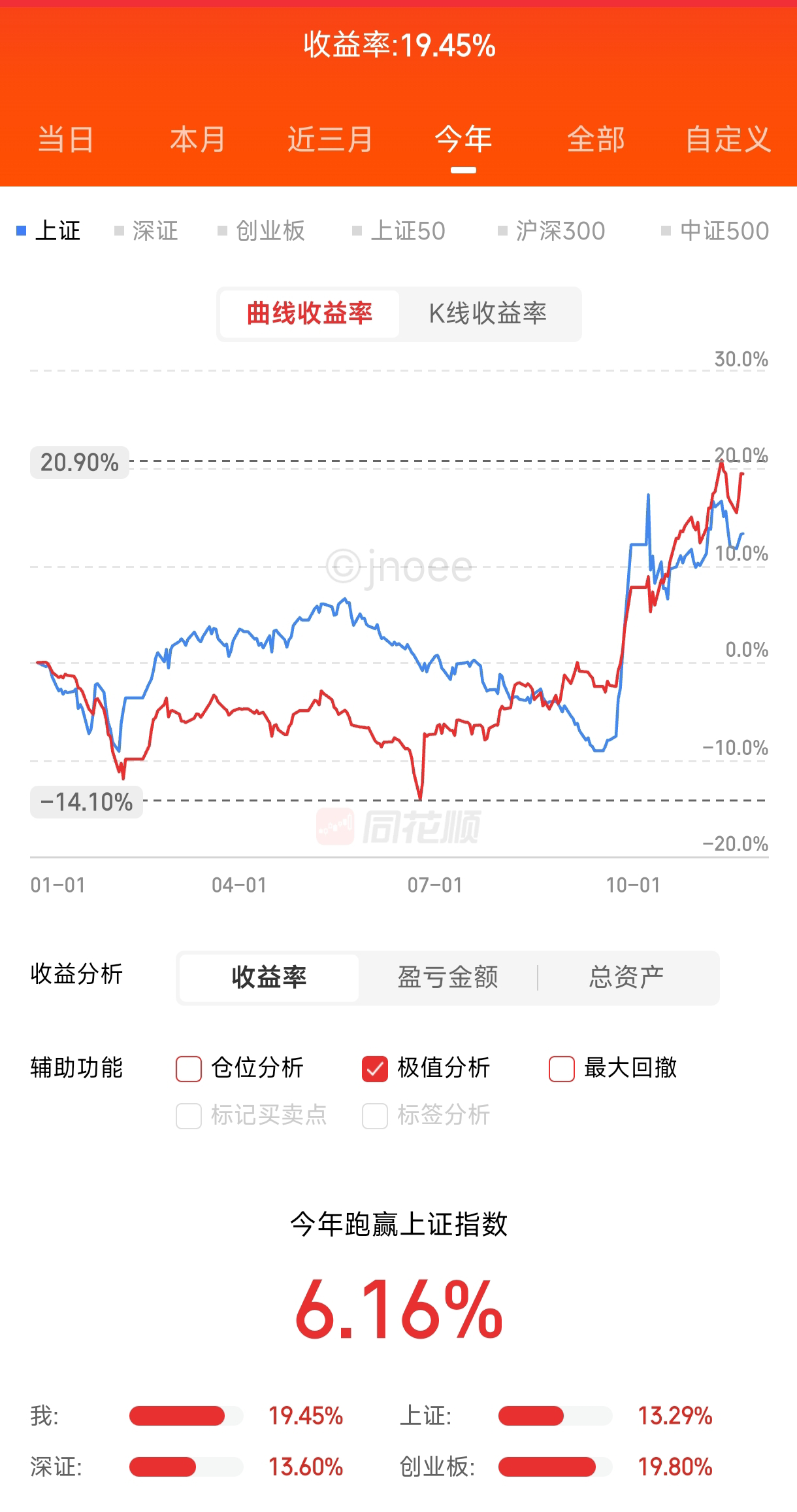同花顺这个统计大概出了点问题,今天统计出来收益率还增加了,明天给到这个收益率就行了,也不用改了。