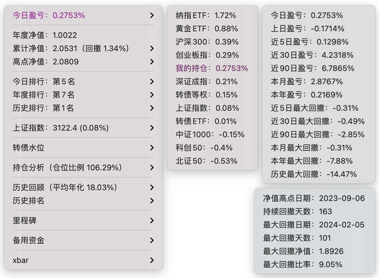 净值数据:1.0016(本年度),2.052(累计),高点回撤 -1.39%